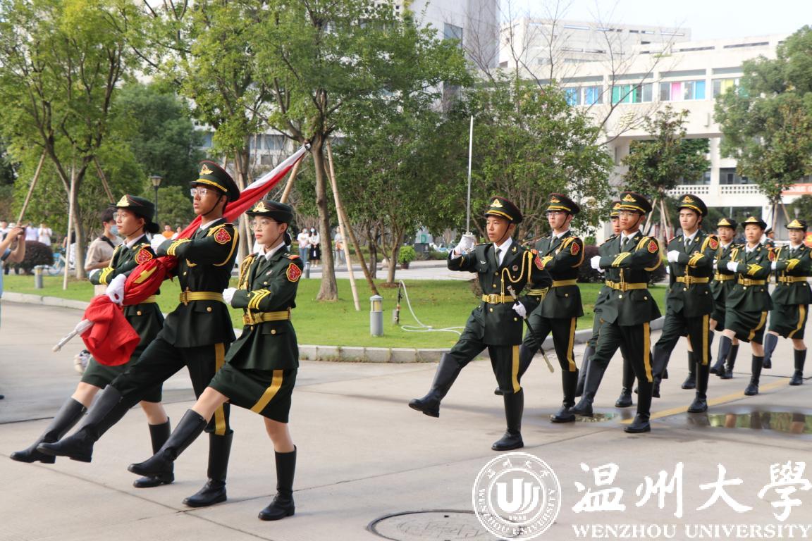 伴随着雄壮的《义勇军进行曲》响彻温大校园,鲜艳的五星红旗冉冉升起,现场师生向国旗致以庄严的注目礼,深情表达对伟大祖国的热爱。