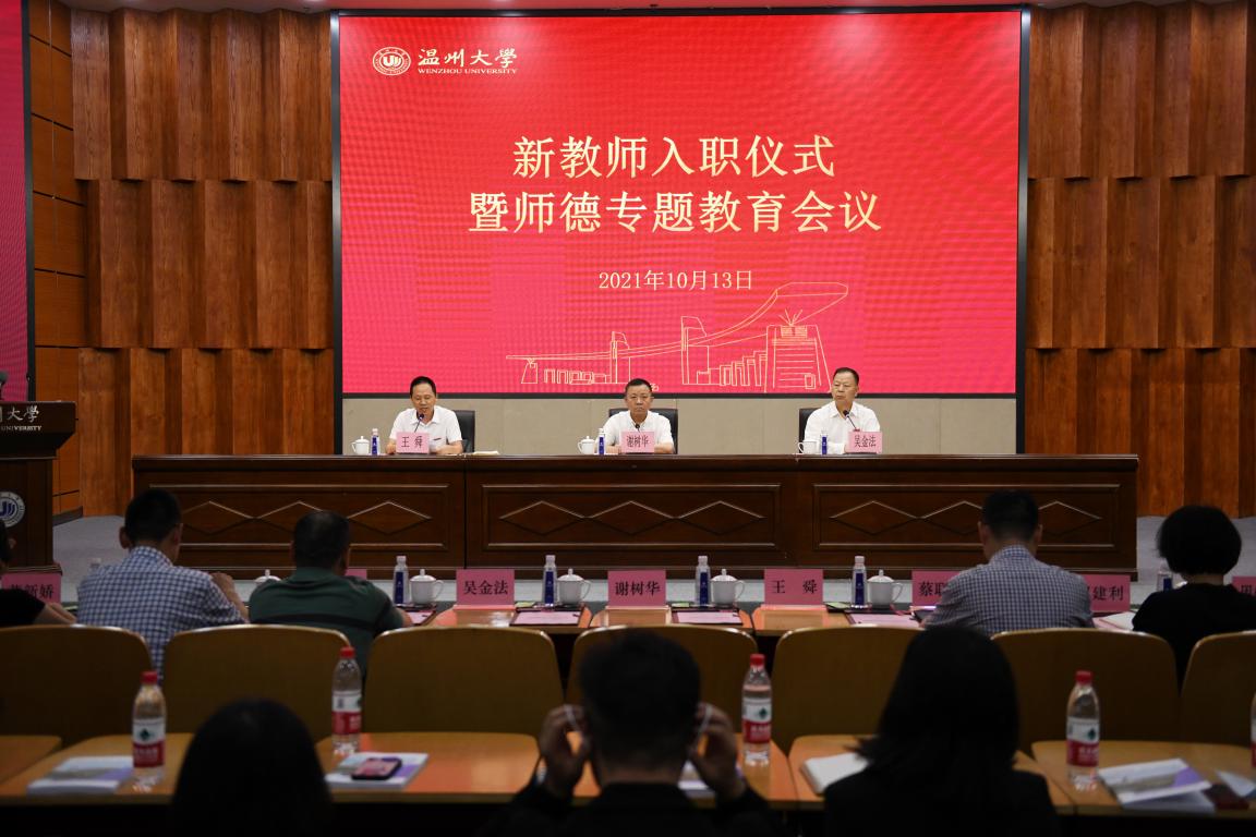10月13日下午,日本色情片 举行2021年度新教师入职仪式暨师德专题教育会议。校党委书记谢树华、副书记吴金法、副校长王舜出席会议。党校办、统战部、纪检监察室、教务处、科技处、人文社科处、人事处、教发中心等相关职能部门负责人,以及150多名2021年新入职教师参加会议。