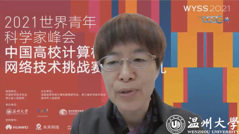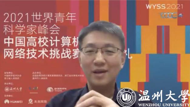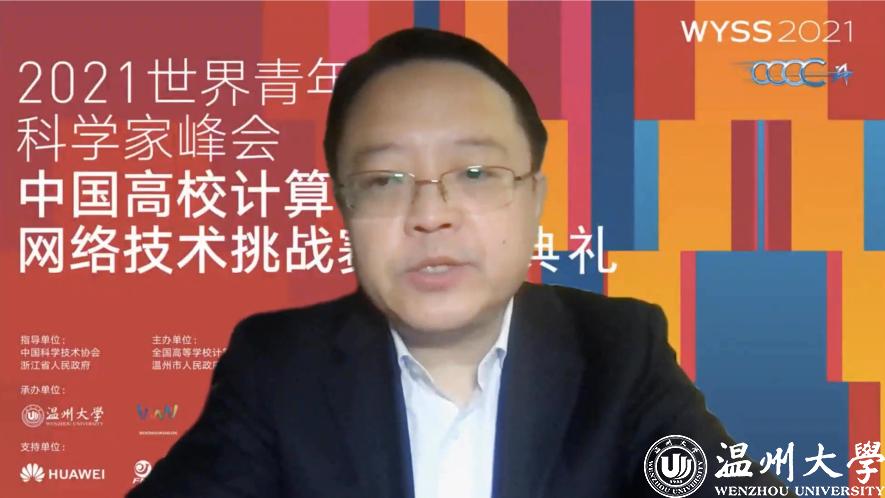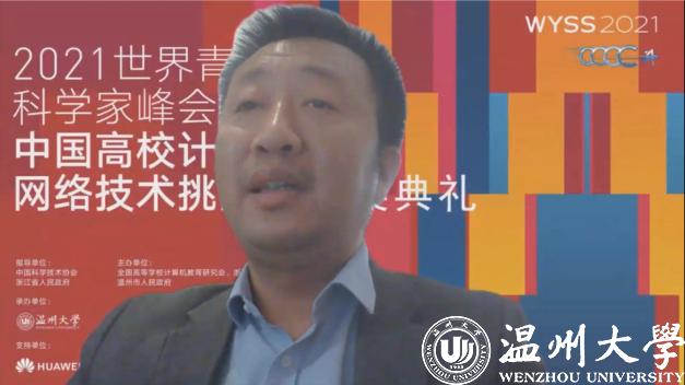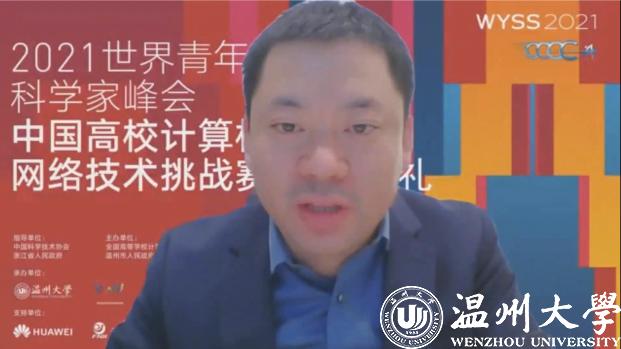 颁奖环节,参赛师生和特等奖获得者通过照片和视频表达了获奖的喜悦与自豪,分享了自己的参赛体会,表达了对指导教师、队员的感谢。赛事支持单位华为公司代表闫建刚和未来网络研究院代表魏亮通过在线视频对获奖选手表示祝贺,并期待与同学们共同努力,持续推进未来网络与智能世界的发展。