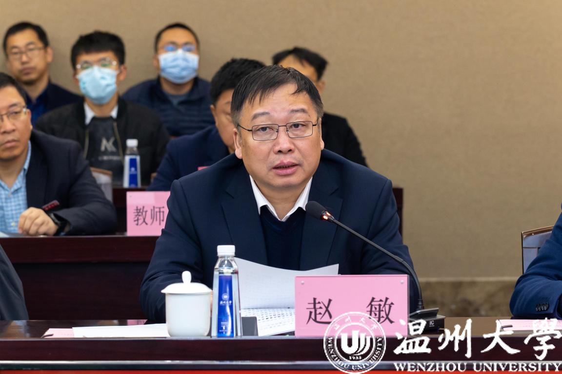 校长赵敏,温州生态园管理委员会党委书记、主任陈朝明出席签约仪式并致辞。副校长王舜主持。温州生态园管理委员会副主任董群策、温州生态园开发建设投资集团有限公司董事长缪克排以及校地双方相关部门负责人参加活动。