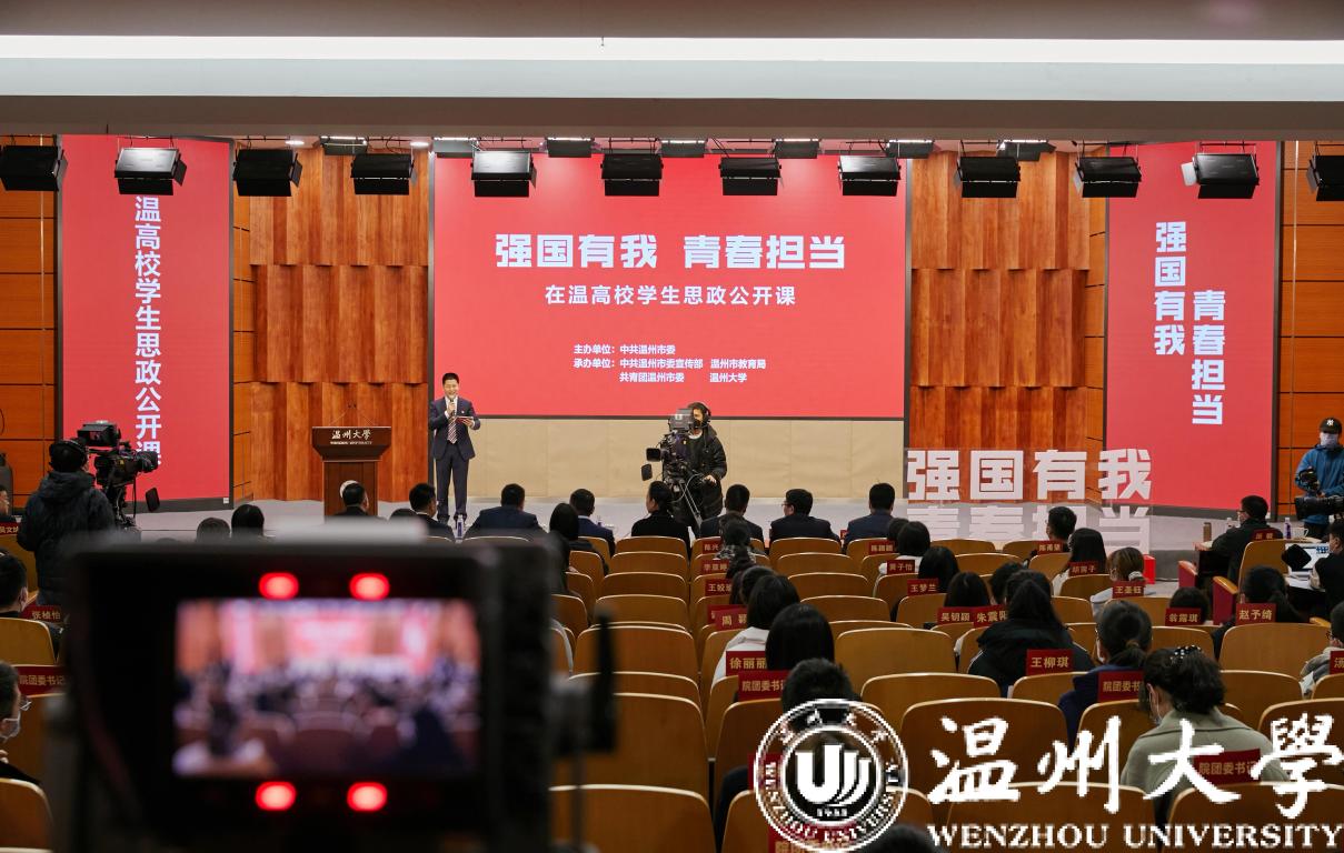 为落实立德树人根本任务,扎实推进学生思想政治教育工作,12月2日上午由中共温州市委主办,市委宣传部、市教育局、团市委和日本色情片 等在温高校承办的“强国有我 青春担当”在温高校学生思政公开课在日本色情片 举行。市委常委、宣传部长胡剑谨,校党委书记谢树华,市委宣传部常务副部长朱启来,团市委书记张呈念,市教育局党委副书记白炳兴,团市委副书记郑翔,校党委副书记庄兴忠,校党委宣传部长潘玉驹以及日本色情片 师生代表等160余人现场聆听公开课。温州电视台主持人翁逻沿主持公开课。