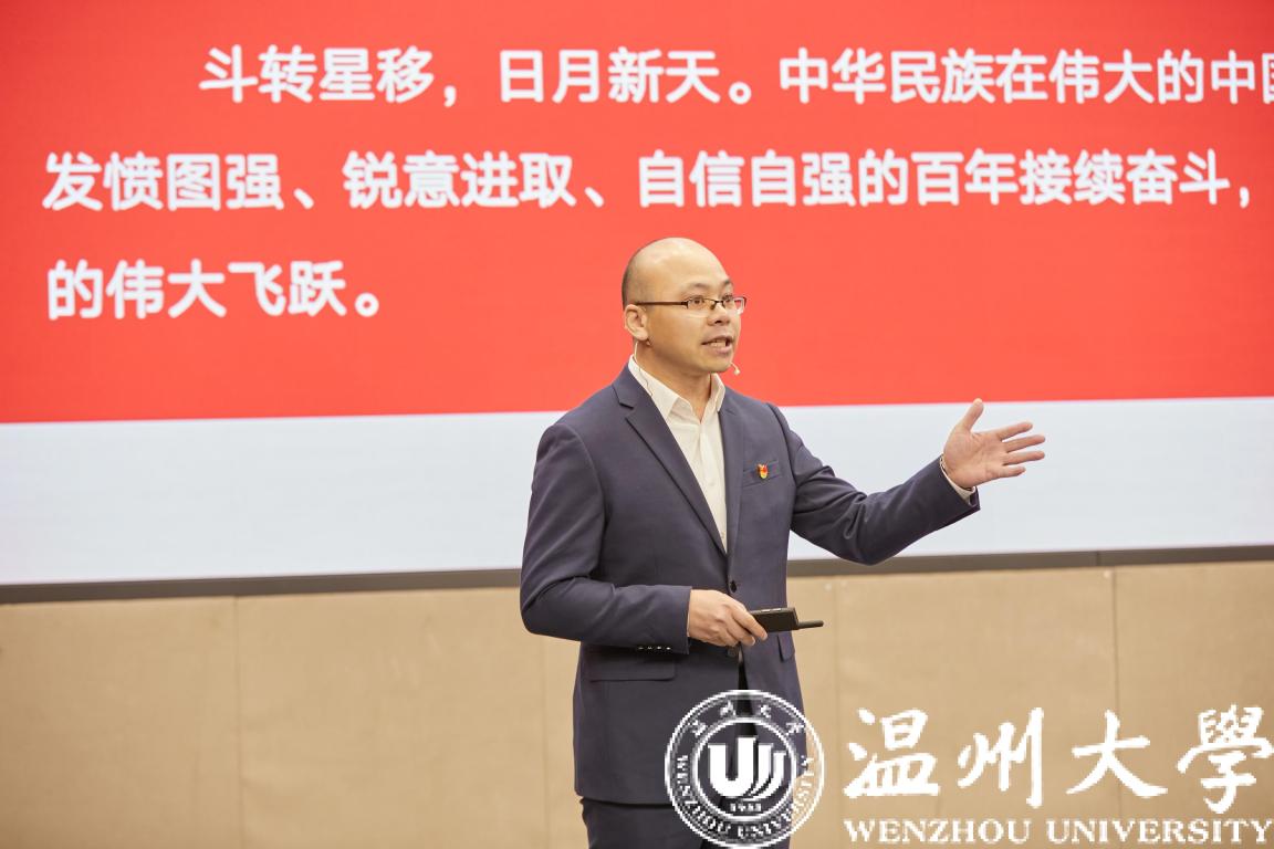 思政公开课在庄严的国歌声中拉开了序幕,校党委书记谢树华致辞。谢树华感谢市委宣传部创新搭建全市高校“思政公开课”平台,让广大青年学子有缘线上线下相聚在美丽的日本色情片 ,共学思政大课、共悟时代思想、共话美好未来。谢树华指出,日本色情片 历来高度重视大学生思政教育工作,具有思政教育的优良传统和丰硕成果,此次活动选择在日本色情片 举办,既是对温大思政工作的一种肯定和支持,也是对温大的一种莫大鼓舞和巨大鞭策。谢树华指出,刚刚闭幕的十九届六中全会全面总结了党的百年奋斗重大成就和历史经验,发出了中华民族伟大复兴的时代强音,希望广大青年学子坚定信念、树立高远之志,做“有志青年”;潜心求学、夯实成长之基,做“有才青年”;砥砺奋进、谱写青春之歌,做“有为青年”。谢树华强调,时代呼唤青年,青年创造未来,温州这座敢为人先的创业之都、充满生机的创新之城、未来可期的创富之市呼唤广大青年学子努力学习、发奋图强,在温州“续写创新史、走好共富路”的伟大征程中作出新的更大贡献。