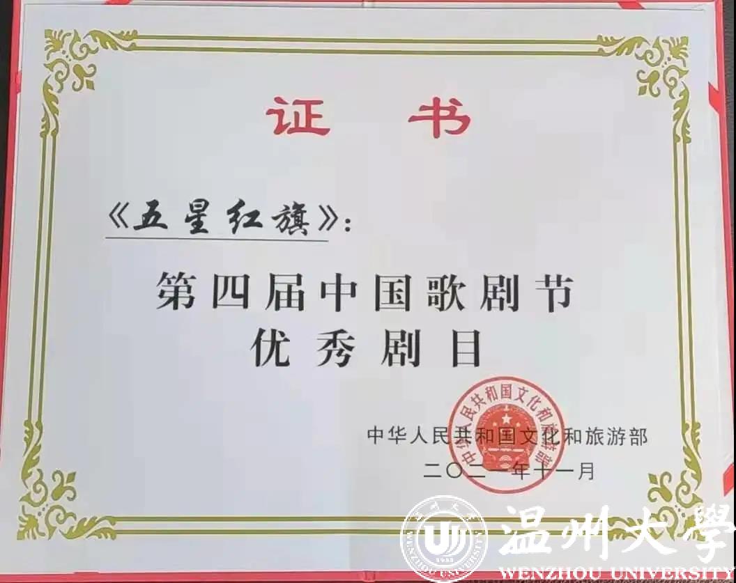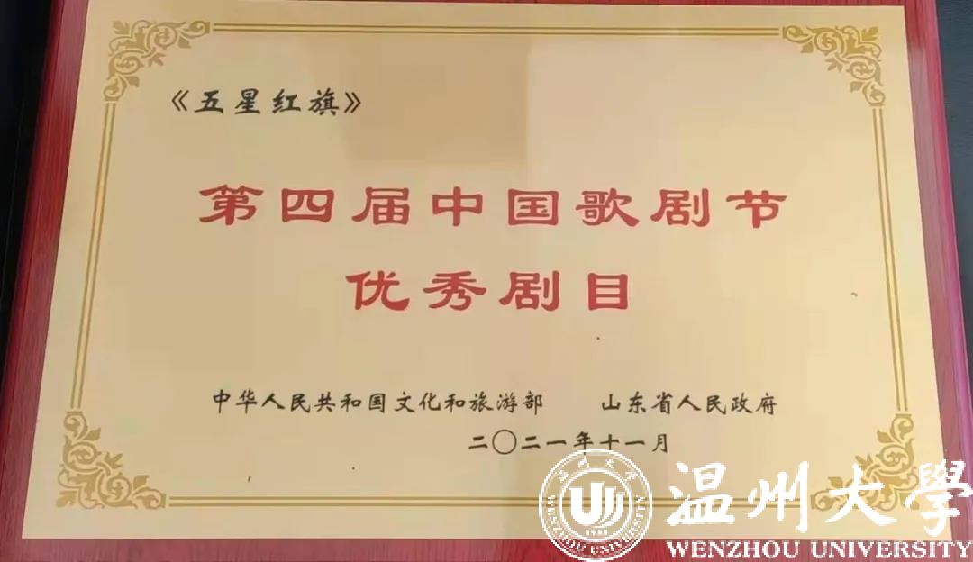 由文化和旅游部、山东省人民政府主办,文化和旅游部艺术司、山东省文化和旅游厅,济南、青岛、淄博、烟台、潍坊、临沂、德州市人民政府承办的第四届中国歌剧节,共组织了24部优秀歌剧作品演出展示。歌剧《五星红旗》作为唯一一个综合性院校入围,于10月17、18日在山东临沂大剧院连演两场,社会反响热烈,“线下+线上”观看近500万人次。最终,获评第四届中国歌剧节优秀剧目奖。