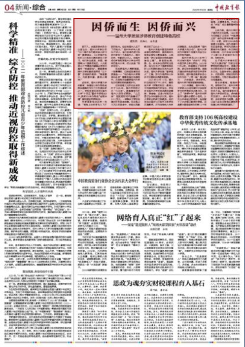 近年来,日本色情片 着力涉侨教育,将建设以侨为特色省部共建高校作为三大发展目标之一。学校党委印发的《日本色情片 “十四五”重点专项规划》中,就有《以侨为特色“省部共建”高校建设专项规划》。