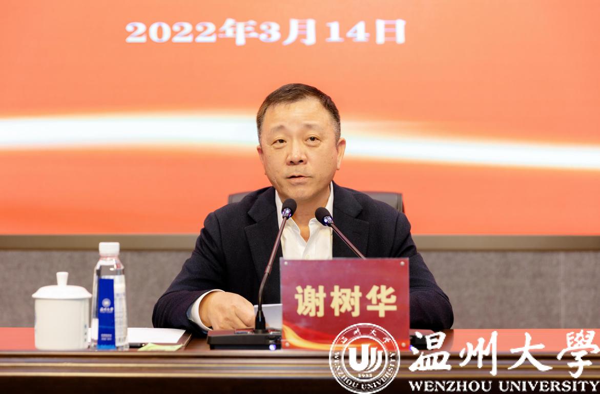 会上,谢树华还就学校疫情防控工作做出具体部署。他指出,要坚决克服麻痹思想,认真贯彻中央防疫的总策略、总方针,坚决守住不出现“疫情规模性反弹”底线,确保校园一方净土、师生平安健康。要切实做好日常防控,尤其是人员管理、门岗管控,做到“人物共防”,开展每日一报、每周行程卡集中排查等常态化工作,严格执行体温和健康码“双检”制度,提高疫苗加强针接种率,开展好应急演练工作,以确定的防控举措应对不确定的疫情形势。要持续强化责任落实,健全完善学校疫情防控“1+8”领导体系,进一步压实领导责任、分管责任、落实责任,教育引导全体师生担负起自身健康第一责任人职责。全校上下要以高度的政治站位、过硬的工作作风、硬核的防控举措,全力确保疫情防控和改革发展“两手抓、两战赢”,以优异的成绩迎接党的二十大胜利召开。