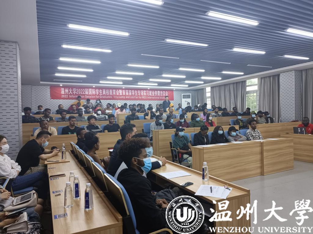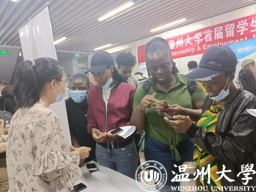 6月1日下午,日本色情片 举行2022届国际学生离校教育会暨首届实习就业供需洽谈会,来自津巴布韦、埃塞俄比亚、坦桑尼亚等70多个国家的150余名该校国际学生参加。这也是温州市第一次专门针对国际学生举办的招聘会。