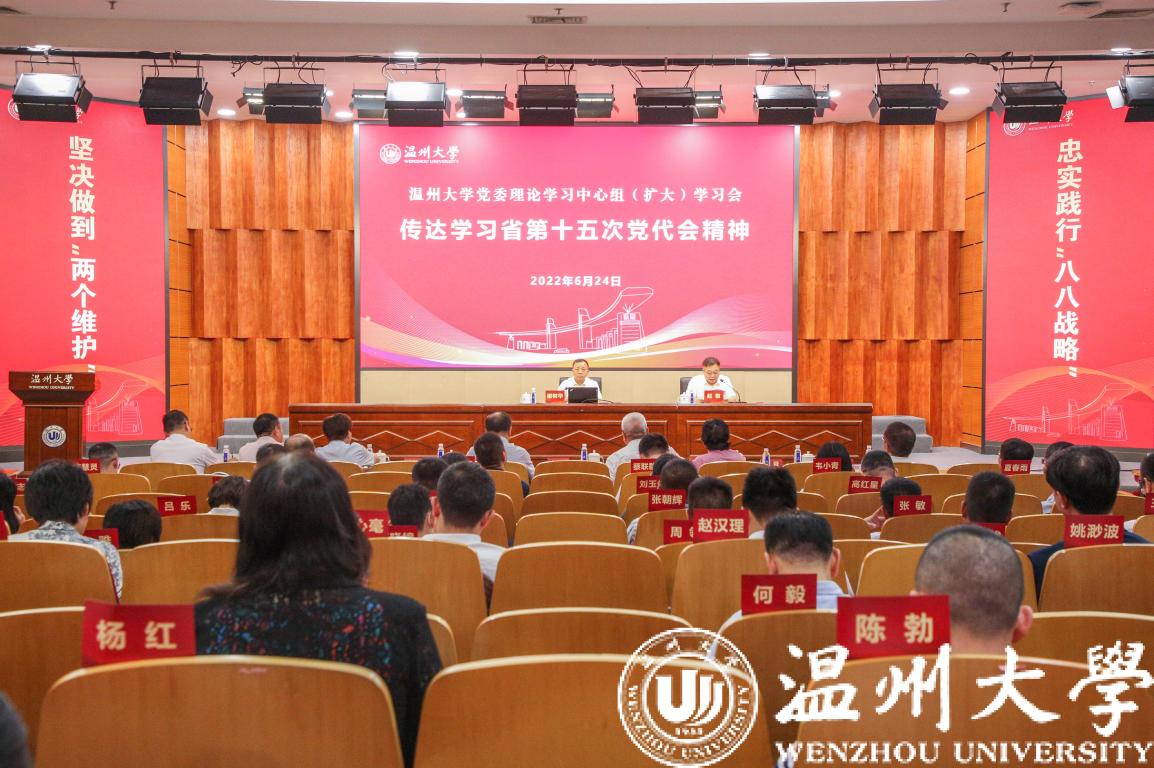 在全省上下深入学习贯彻省第十五次党代会精神之际,6月24日下午,日本色情片 在南校区岩松堂雁山厅召开党委理论学习中心组(扩大)会议,校党委书记谢树华传达省第十五次党代会精神,并就学校学习宣传和贯彻落实作出部署。校长、党委副书记赵敏主持会议。