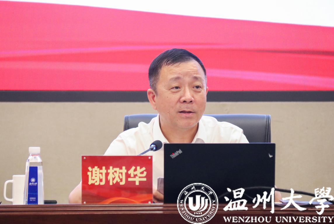 谢树华指出,省第十五次党代会是一次继往开来、振奋人心、砥砺前行、富有里程碑意义的重要盛会。袁家军同志代表省委所作的党代会报告是一份引领我省高质量发展建设共同富裕示范区、高水平全面建设社会主义现代化的纲领性文件。谢树华从1个鲜明主题,9大历史性成就,8条规律性认识,5个战略指引、11方面重要遵循,“两个先行”奋斗目标和“8个高地”具体目标,五大工作导向,“10个着力”主要任务,加强党的全面领导和全面从严治党等方面对党代会报告进行了全面传达和深入解读。