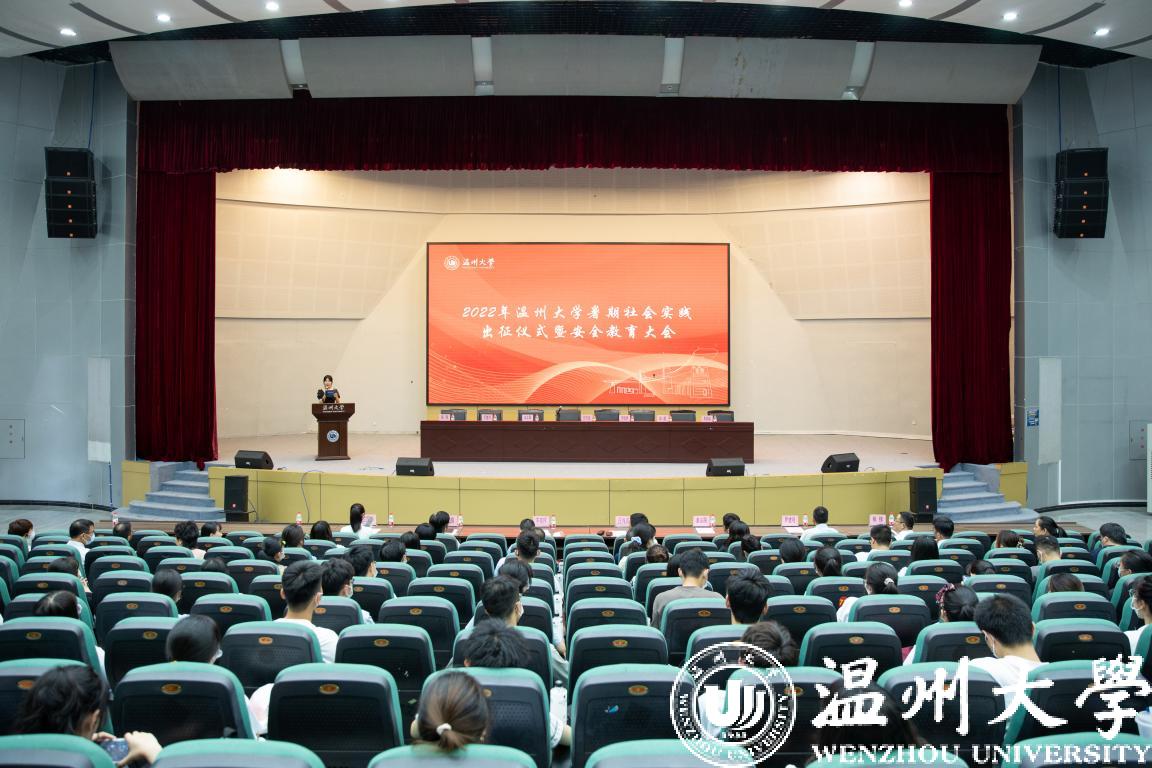 为深入学习宣传贯彻习近平新时代中国特色社会主义思想,贯彻落实习近平总书记关于青年工作的重要思想,持续深入推进“双百双进”活动,引导和帮助广大青年学生上好与现实相结合的“大思政课”,积极助力我省“高质量发展建设共同富裕示范区”,7月1日,日本色情片 2022年暑期社会实践出征仪式暨安全教育大会举行。校党委副书记庄兴忠,组织部、宣传部、教务处、研工部、学工部、招就处、团委等部门相关负责人,各学院分管书记、团委书记,全校暑期社会实践队代表300余人参加了出征仪式。