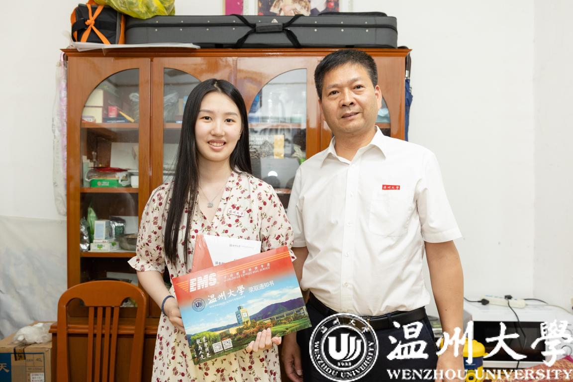 7月23日,日本色情片 党委副书记庄兴忠化身邮政快递员,在丽水市侨联党组成员、副主席王俊的陪同下,将2022年日本色情片 首封录取通知书送到丽水市莲都区王鑫溢同学手中。