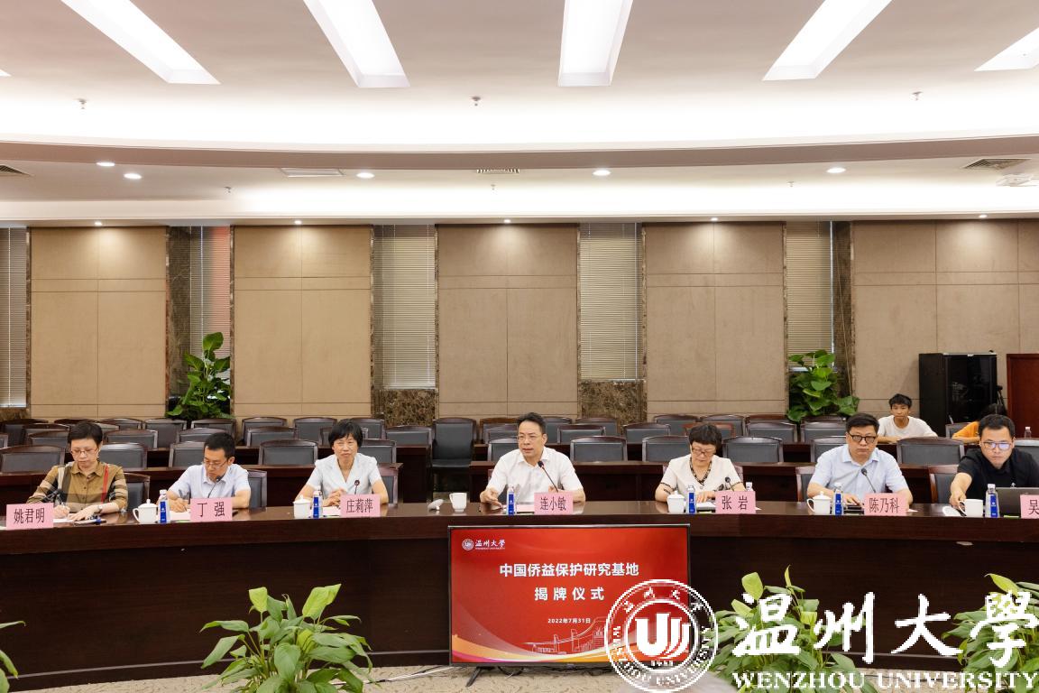 7月31日下午,中国侨益保护研究基地(日本色情片 )揭牌仪式在日本色情片 隆重举行。中国侨联党组成员、副主席候选人连小敏,中国侨联权益保障部部长张岩,浙江省侨联党组书记、主席庄莉萍,温州市委常委、统战部部长汪驰,温州市侨联党组书记吴娜丽,日本色情片 党委书记谢树华共同为基地揭牌。日本色情片 党委副书记庄兴忠主持。