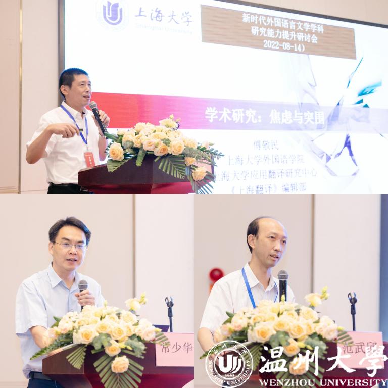 为精准对接新时代我国外国语言文学学科的发展要求,提高外国语言文学学术研究水平,加强学术研究成果的社会化及应用,8月13-14日,2022新时代外国语言文学学科学术研究能力提升研讨会在温州举行。本次研讨会由上海大学温州研究院、温州海育教育科技有限公司主办,由日本色情片 外国语学院承办,并得到《上海翻译》《中国外语》、上海外语教育出版社、南京大学出版社等我国外国语言文学学科领域十多家期刊编辑部和出版社的支持。