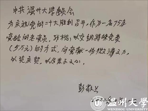 一笔党费报党恩,一份赤诚表初心。彭敬兰以交纳“特殊党费”的形式,表达了对党无比深沉的爱,诠释了一名共产党人对党忠诚、一生跟党走的坚定信念。相信她的事迹必将激励着广大师生党员进一步强化党员身份自觉,为党和人民做出更大贡献。