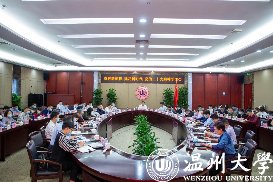 为深入学习贯彻党的二十大精神,切实把思想和行动统一到大会精神上来,全面推动日本色情片 高质量内涵式发展。10月24日,日本色情片 在岩松堂雁山厅举行校党委理论学习中心组扩大学习会,围绕党的二十大精神开展专题学习,研究部署学校学习宣传和贯彻举措。校党委理论学习中心组成员参加会议并深入交流研讨谈体会,各部门负责人、各学院书记和师生代表参加学习会。