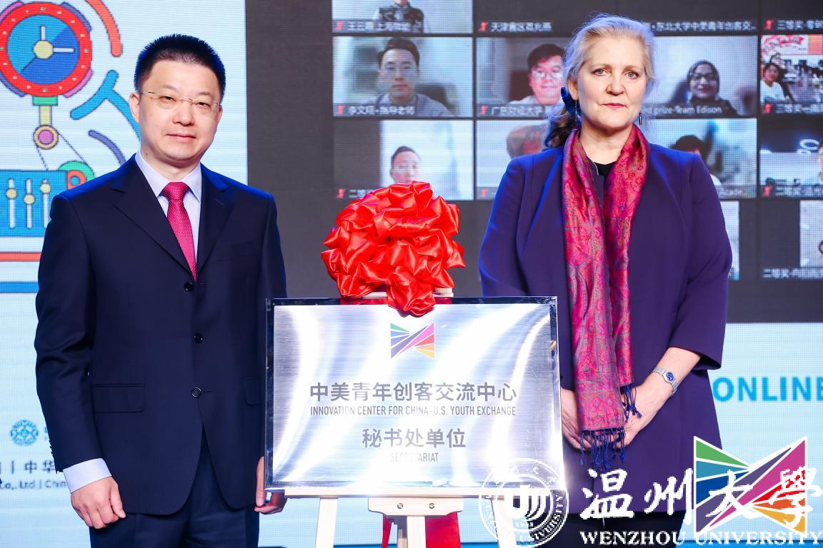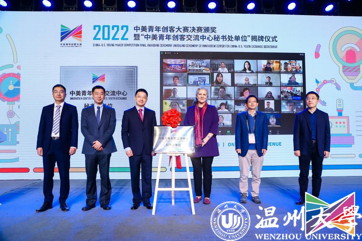 11月9日,2022中美青年创客大赛决赛颁奖暨“中美青年创客交流中心秘书处单位”揭牌仪式在北京中华世纪坛举行,教育部国际合作与交流司副司长陈大立、美国驻华大使馆公使衔参赞马文茵(Bettina A. Malone)、北京市委宣传部副部长张劲林、教育部留学服务中心副主任李晓哲等领导出席活动。活动在日本色情片 设立线上分会场,校长赵敏、党委副书记庄兴忠出席,党校办、宣传部、创新创业学院等部门学院相关负责人及温州肯恩大学代表参会。