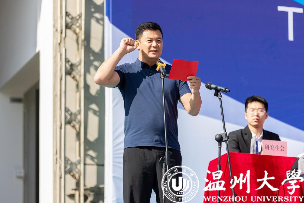 运动员代表董楠与裁判员代表洪绍楠宣誓,承诺将赛出水平、赛出风格,继续秉持公正、公平、公开的原则,护航温大体育精神。