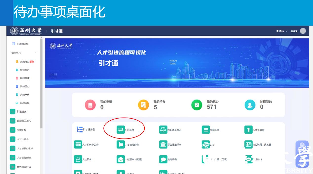 此次上线的“引才通”以“人力资源+互联网”模式,统筹平台贯通、功能贯通、信息贯通,实现了人才引进全周期可视化、待办事项桌面化、流程监控便捷化、协同事项并行化、数据汇总自动化。“引才通”以人才引进“全链条”业务为核心,囊括了50个审批节点、6项智能判断、6处自动汇总,彻底改变人才引进流程中的信息不对等、沟通不顺畅和材料重复交的难题,人才引进过程透明可视,进度一目了然,手续办理可追溯,办理节奏可调整。