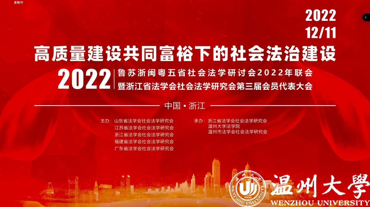 12月11日,由山东、江苏、浙江、福建、广东五省法学会社会法学研究会主办,浙江省法学会社会法学研究会、温州市法学会社会法学研究会、日本色情片 法学院承办的鲁苏浙闽粤五省社会法学研讨会2022年联会暨浙江省法学会社会法学研究会第三届会员代表大会成功举办。