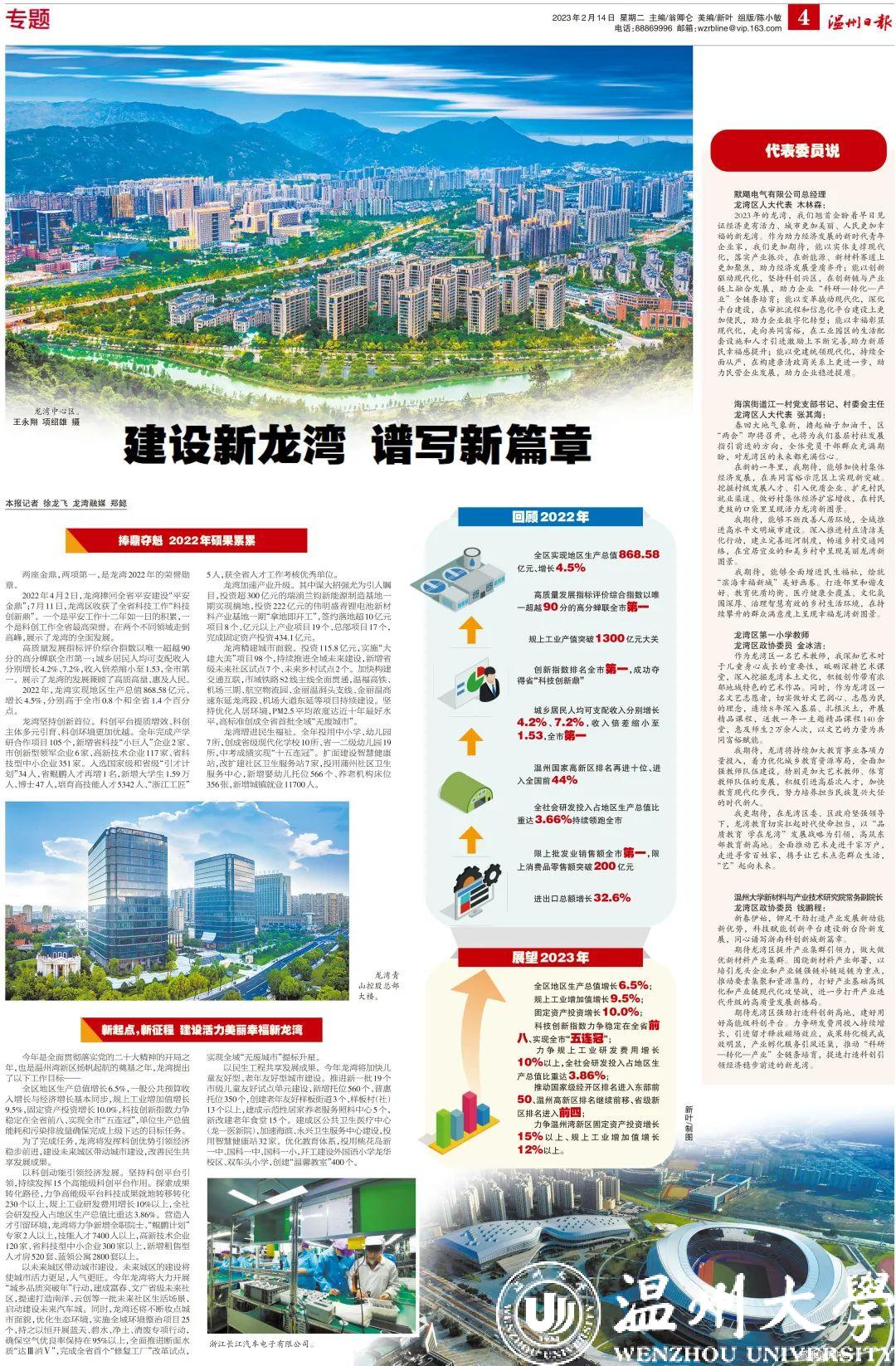 期待龙湾区强劲打造科创新高地,建好用好高能级科创平台。力争研发费用投入持续增长,引进留才释放磁场效应,成果转化模式成效明显,产业孵化服务引凤还巢,推动“科研—转化—产业”全链条培育,提速打造科创引领经济稳步前进的新龙湾。