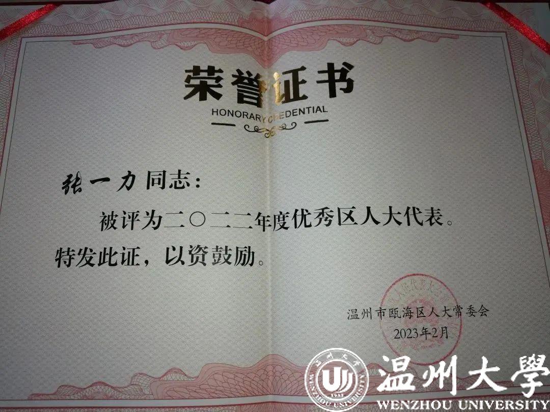 张一力教授被评为“2022年度优秀区人大代表”并受到表彰。