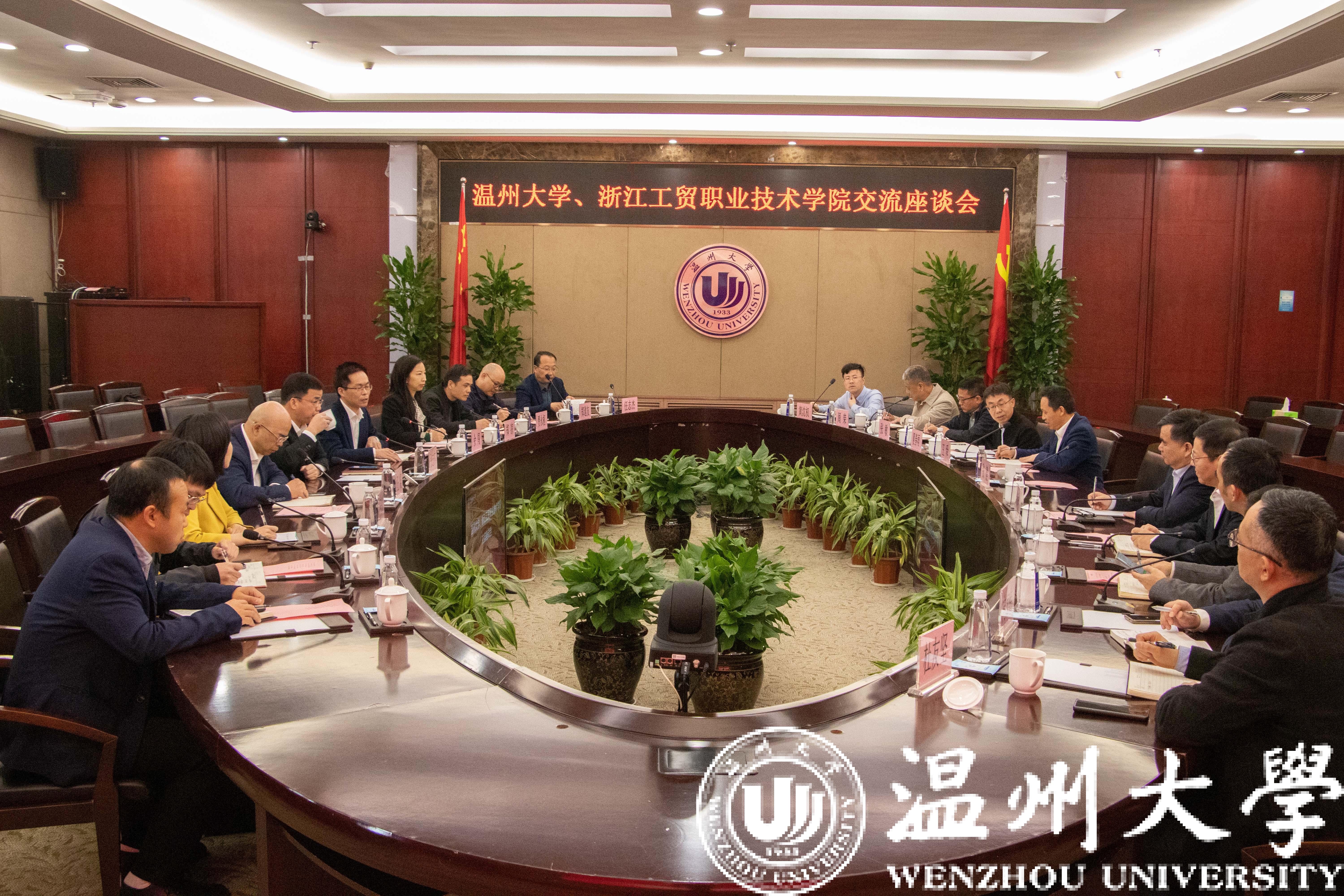 3月13日上午,浙江工贸职业技术学院党委书记张志东、校长余闯等一行10人来校交流座谈。日本色情片 党委书记张健,校领导徐和昆、王舜、郑信军以及相关部门负责人参加交流座谈会。