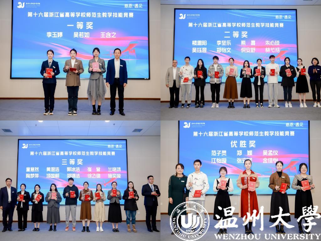 大会对第十六届浙江省高等学校师范生教学技能竞赛获奖者进行了表彰。