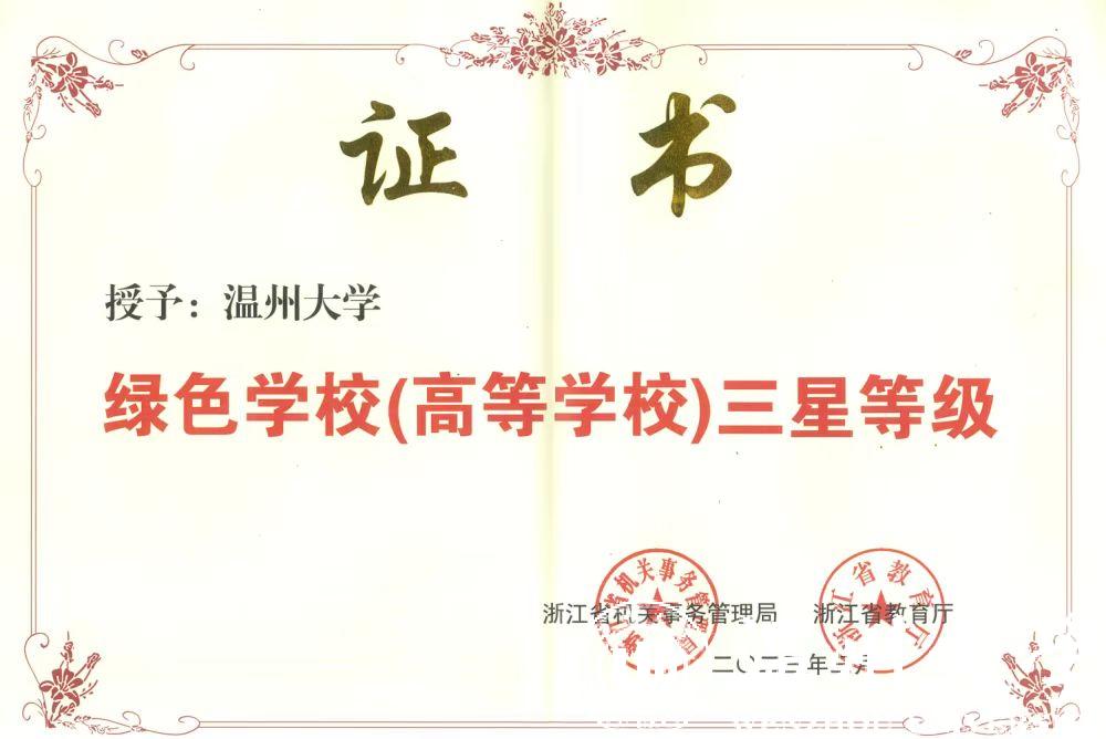 近日,浙江省机关事务管理局、浙江省教育厅联合公布第二批绿色学校(高等学校)名单,日本色情片 荣获“浙江省绿色学校(高等学校)三星等级”称号。