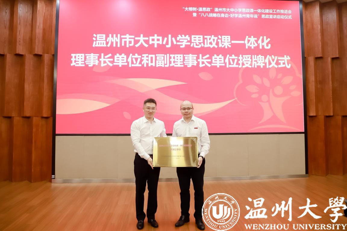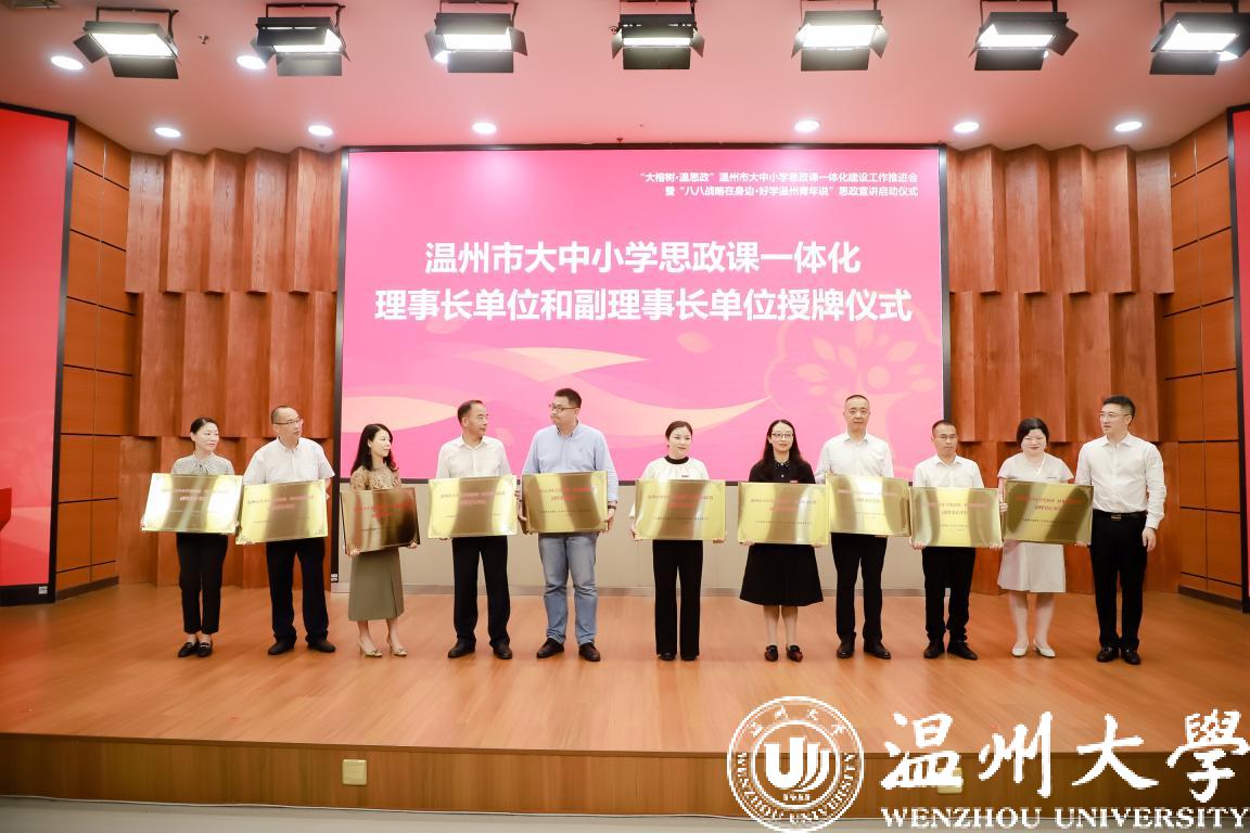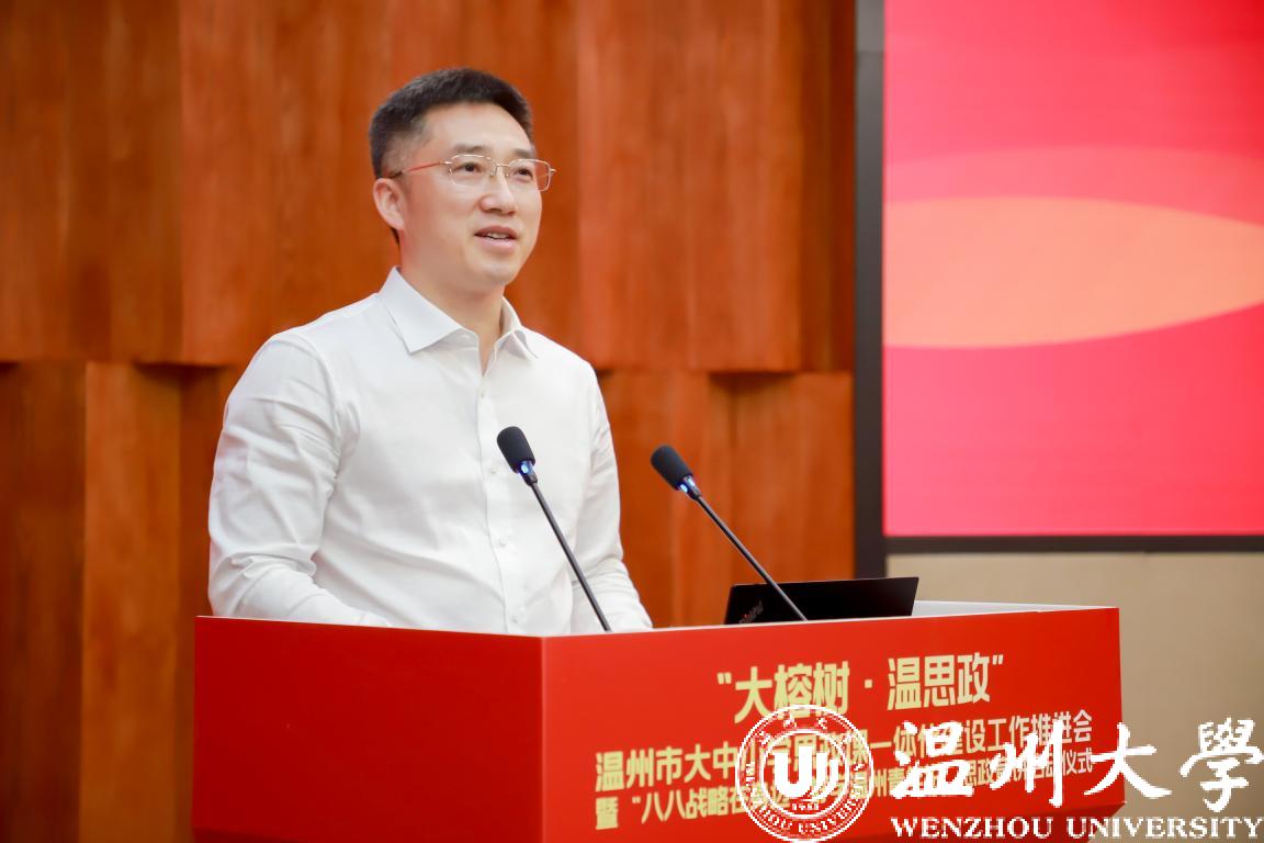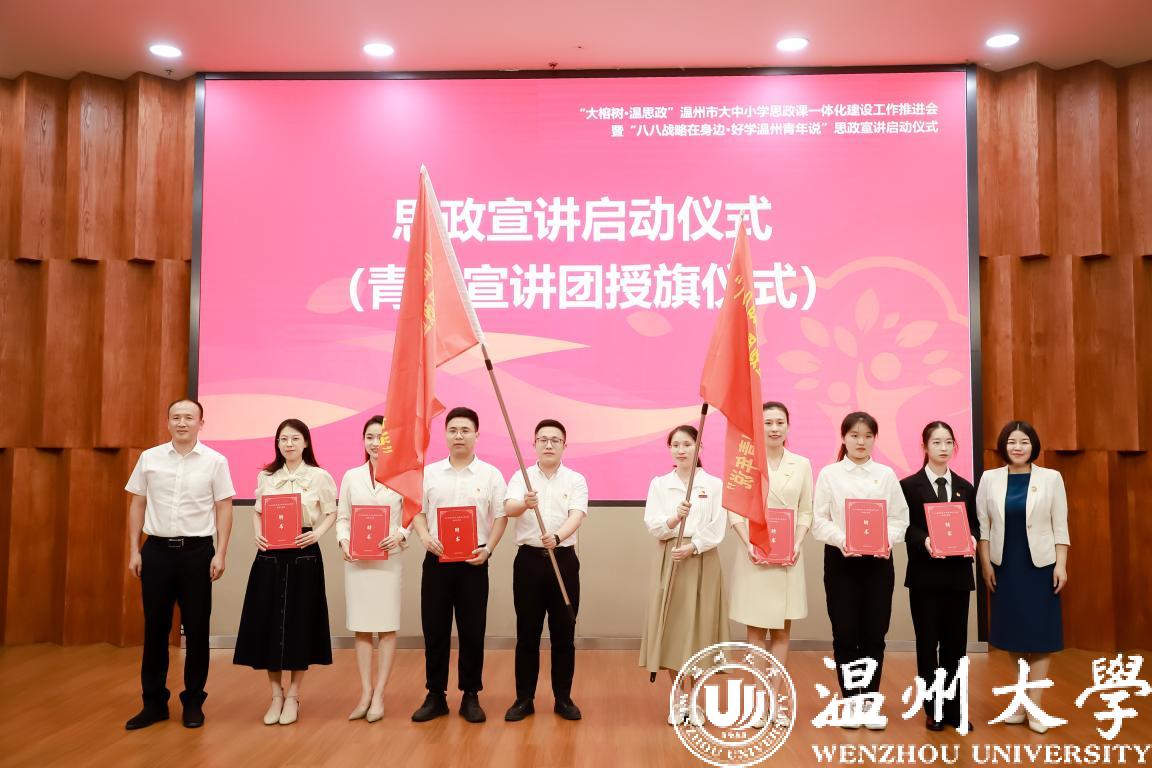 为深入贯彻落实习近平总书记关于教育特别是思政课建设的重要论述精神,一体化推进大中小学思政课建设,着力打造温州思政教育品牌,5月16日,由中共温州市委教育工委(温州市教育局)、中共温州市委宣传部主办、日本色情片 承办的“大榕树·温思政”温州市大中小思政课一体化建设工作推进会暨“八八战略在身边·好学温州青年说”思政宣讲启动仪式在日本色情片 岩松堂雁山厅隆重召开。