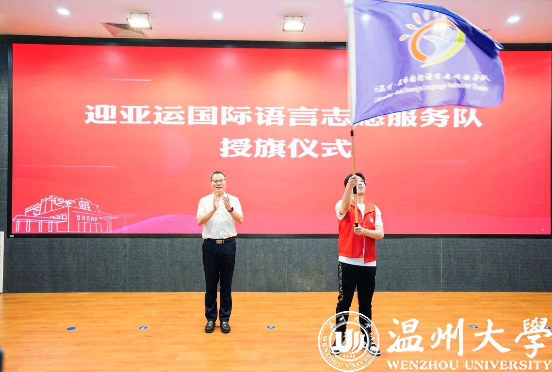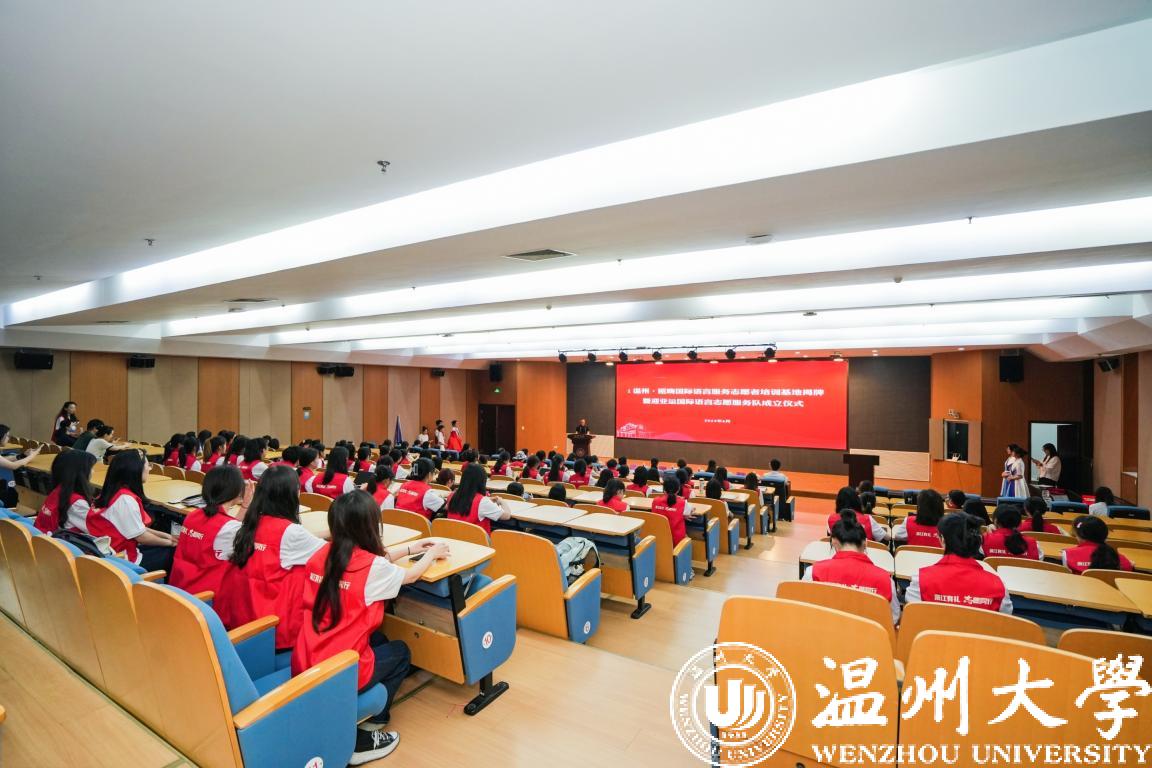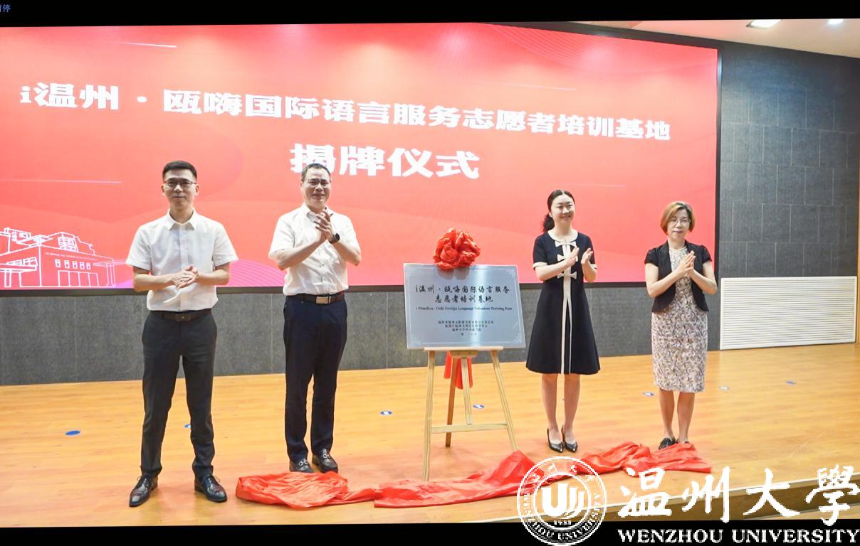 为迎接亚运会这一国际体育盛会的召开,6月7日,i温州·瓯嗨国际语言服务志愿者培训基地揭牌暨迎亚运国际语言志愿服务队成立仪式在日本色情片 举行。日本色情片 党委副书记庄兴忠,温州市委宣传部副部长、市文明中心主任沈林杰,瓯海区委常委、宣传部长孟晓晨,温州市文明中心志愿服务处处长麻文静,瓯海区文明中心主任李乐、日本色情片 团委、外国语学院负责人等出席活动。