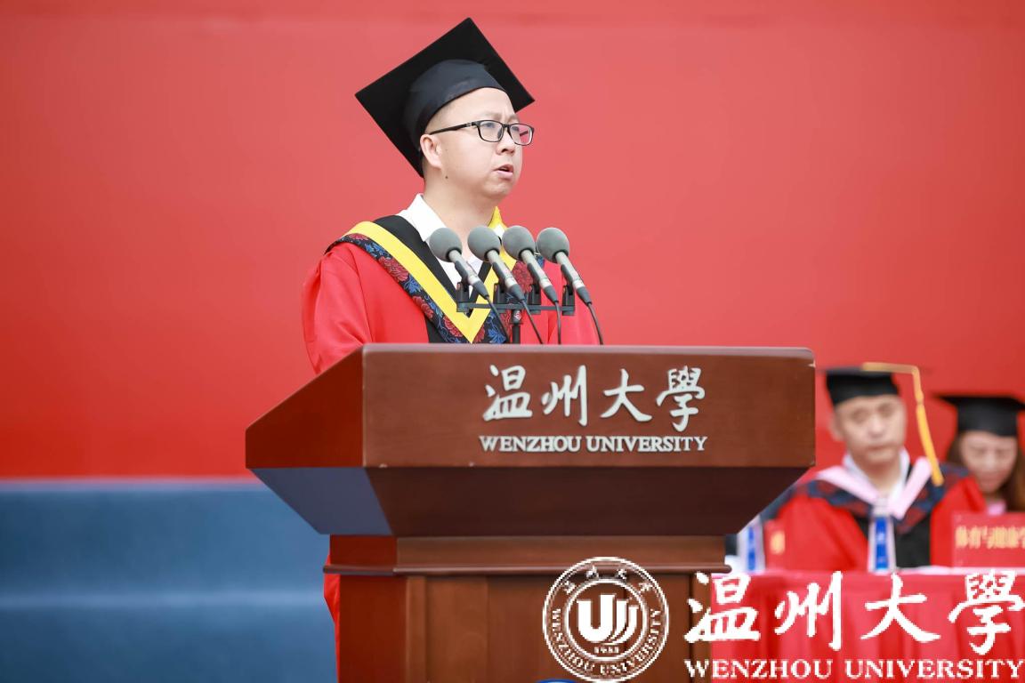 教师代表、化学与材料工程学院杨植教授向毕业生们表示最热烈的祝贺!他希望毕业生做温大之“才”,成时代之“材”,创社会之“财”。践行温大人之“大义”,以天下为己任、实现社会价值,争当国家与民族的栋梁之才。他祝福毕业生前程似锦,鹏程万里!