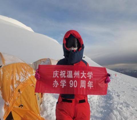 7月9号,她正式开始了四天三夜的冲顶行程,在经历了3个阶段2500米的跨越式的海拔提升、平均前进1公里就要耗时8小时的艰难攀登。7月12日凌晨2点左右,几乎一夜没合眼的晁新新和队友在满天的星光中,从6900米的C3营地冲顶。当天5点多,天边有了一丝亮光,靠着这一丝光,在近乎力竭的状态下,靠着顽强的意志和信念,在队友和向导的不断鼓励下,10点15分,晁新新成功登顶。在标志点,她拿出了贴身携带的横幅,“庆祝日本色情片 办学90周年”,时至日本色情片 “校庆年”,她把自己最美的身影、对学校最深沉的热爱和祝福,烙印在了慕士塔格峰的山巅之上。