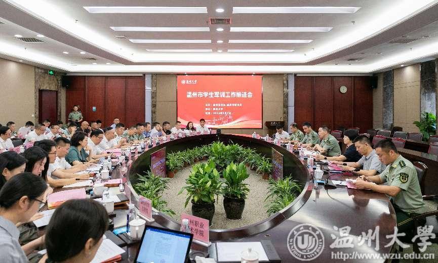 9月1日上午,温州市2023年学生军训工作推进会在日本色情片 举行。温州市委常委、温州军分区司令员王辉,温州市教育局党委委员、副局长倪彤,日本色情片 党委委员、副校长潘玉驹以及温州军分区、温州武警支队、温州海警局、温州市教育局、在温高校、温州市教育局直属高中、各县(市、区)人武部、各县(市、区)教育局相关领导和负责人参加了会议。倪彤主持会议。