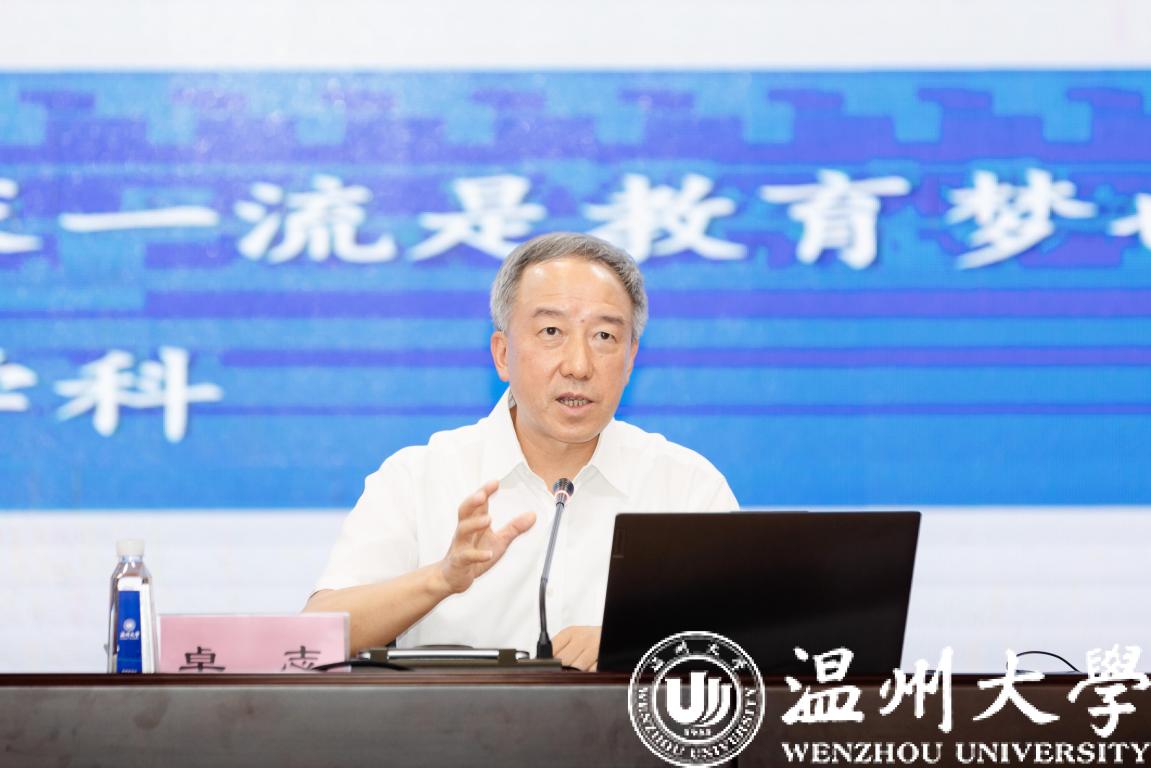 赵敏强调,温大正处于争创高水平大学、争创国家“双一流”高校的关键期,要紧紧抓住国家推进教育强国建设、我省加快高教强省建设的历史机遇,谋深谋细谋实发展举措,全力推动学校高水平建设、高质量发展。面向“高水平”、争创“双一流”,必须树立“时不我待”的危机意识;必须涵养“舍我其谁”的雄心壮志;必须积蓄“一招制胜”的优势特色。通过重点发力、查缺补漏、久久为功,打造一流学科、引育一流师资、培养一流人才、产出一流成果、开展一流服务、强化一流治理、优化一流硬件。