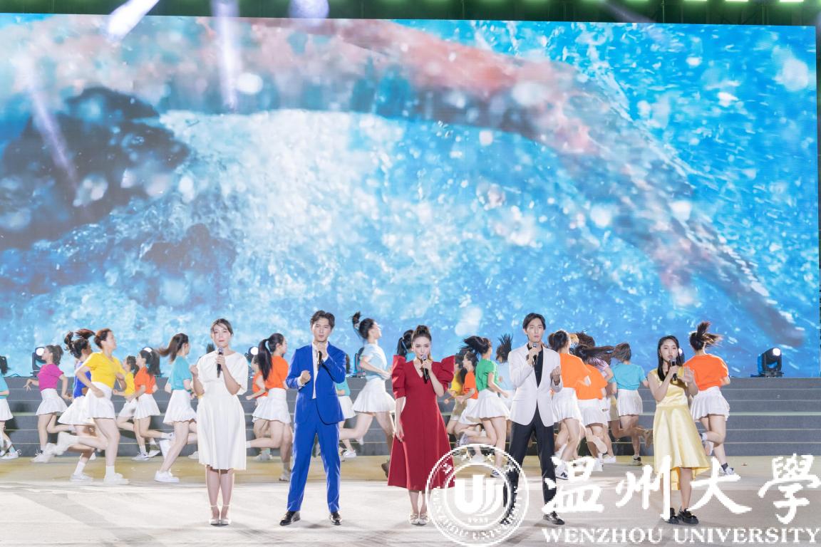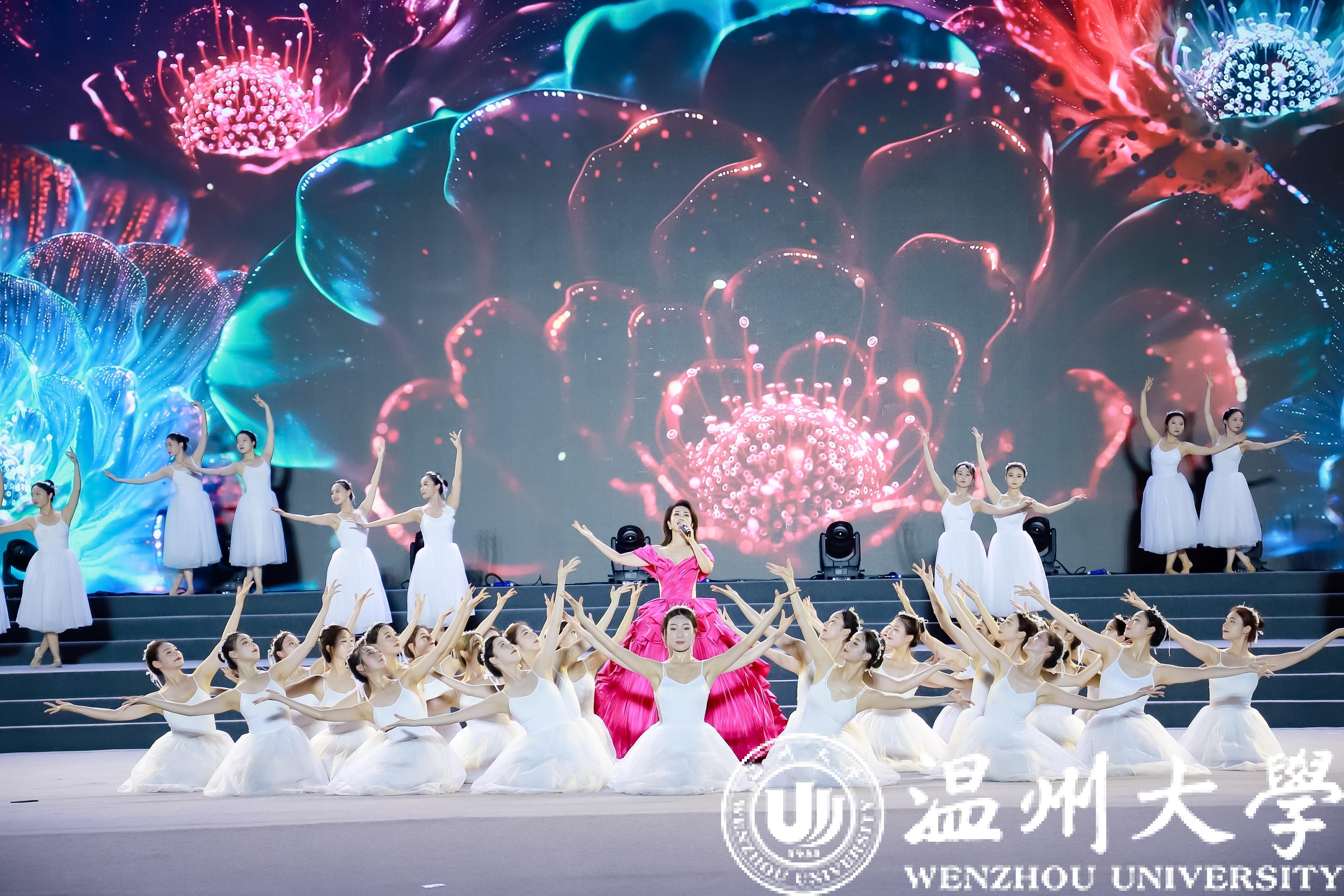 序曲《我的温大》点燃全场,同学们以温大人的身份,心心相连,齐聚一堂,在奋斗路上振翅翱翔。金秋九月,相聚浙江,相聚亚运。《@未来》歌舞飞扬,温大人共同迎接杭州第19届亚运会的到来,迎接更加美好的未来。强国之音,掷地有声,诗朗诵《强国有我 青春担当》充分展现了温大学子的责任与担当……舞蹈《涓流》诠释了“光大国族、造福人群”的温大人勇立潮头、奋楫扬帆,如同涓涓细流汇入祖国建设发展大潮贡献力量。吹打乐《龙腾虎跃》以生动的音乐形象展现了中华民族的美与力量。热爱祖国、家乡,面向世界、未来,独唱《有根有梦有远方》传递出逐梦路上的无限力量。《同爱同在》唱出了跨越万水千山的友谊,充分展示亚运精神与青春昂扬……