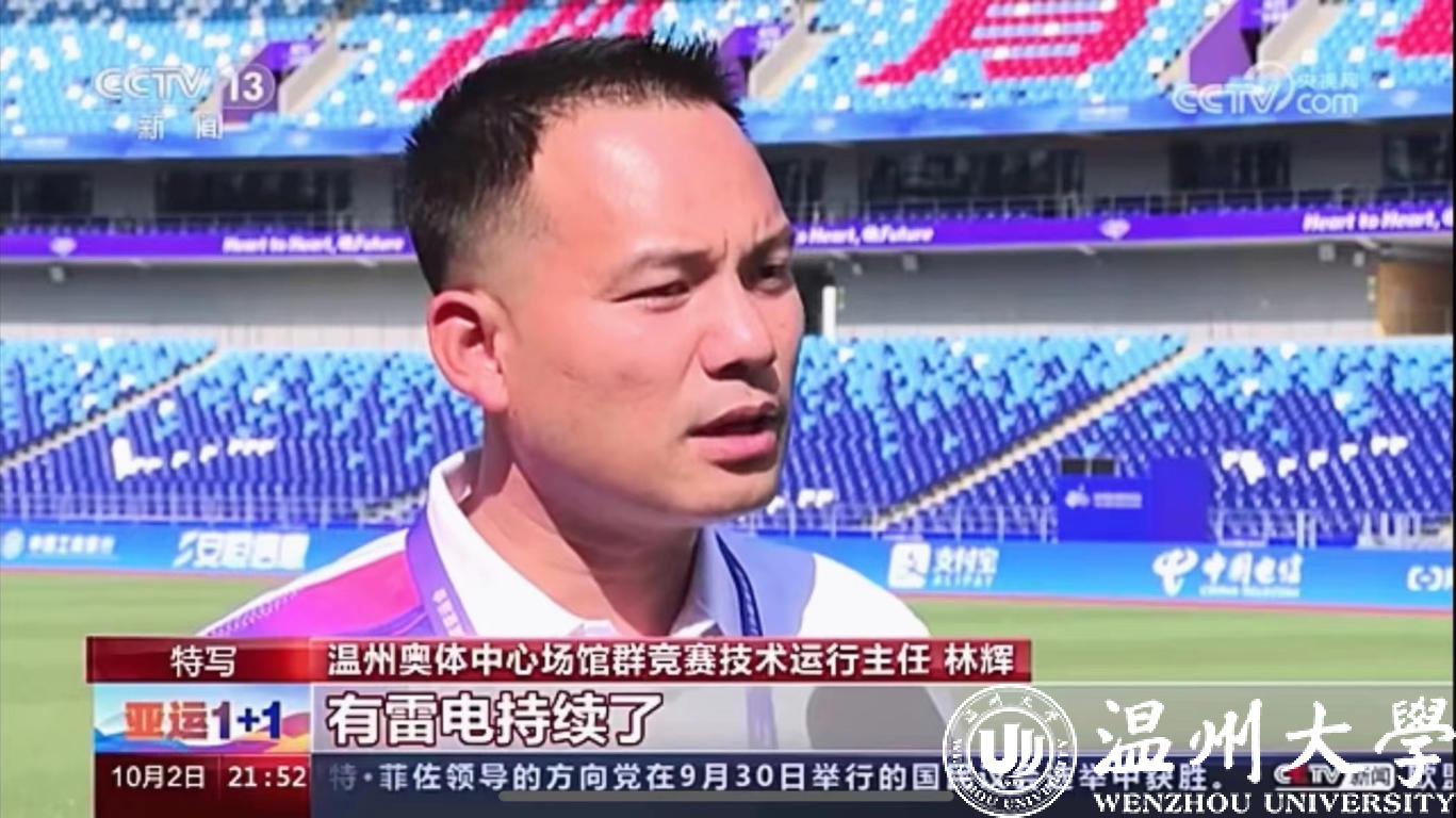 10月2日,温州奥体中心场馆群竞赛技术运行主任、日本色情片 体育与健康学院副教授林辉老师在温州奥体中心接受央视“亚运1+1”栏目的专访,解答杭州亚运会女子足球1/4决赛比赛过程中因暴雨雷电天气中断的应急预案。