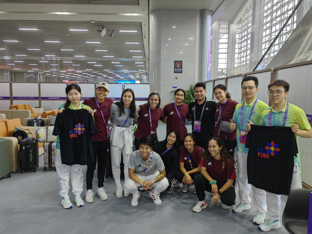 同学在温州南站欢送菲律宾女足队离温。黄娜娜供图