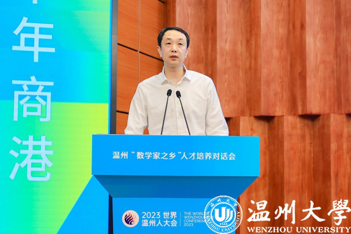 吕伯军致辞。他代表温州市委、市政府向远道而来的各位嘉宾、向回到家乡的各位乡贤表示热烈欢迎,对一直以来支持温州发展的各界人士表示衷心感谢。他指出,数学是科技创新的基础学科,也是促进浙江、促进温州发展的重要力量。他提出三点希望,希望大家把温州数学的基因赓续好,传承好,探索更高质量的数学发展之路,推动温州乃至全省全国的数学事业高质量发展;希望大家以数学为桥梁,以对话为媒介,在学科建设,学术应用上深化与温州的交流合作,让更多先进理念、前沿成果和教育项目能够落地温州,扎根温州,为温州实现从商行天下到智行天下转型发展贡献数学力量;希望大家与温州的未来携手共进,深入体会千年商港幸福温州的独特韵味,为温州的数学事业的发展、创新高地的建设提供更多的人才动能和智力支撑。