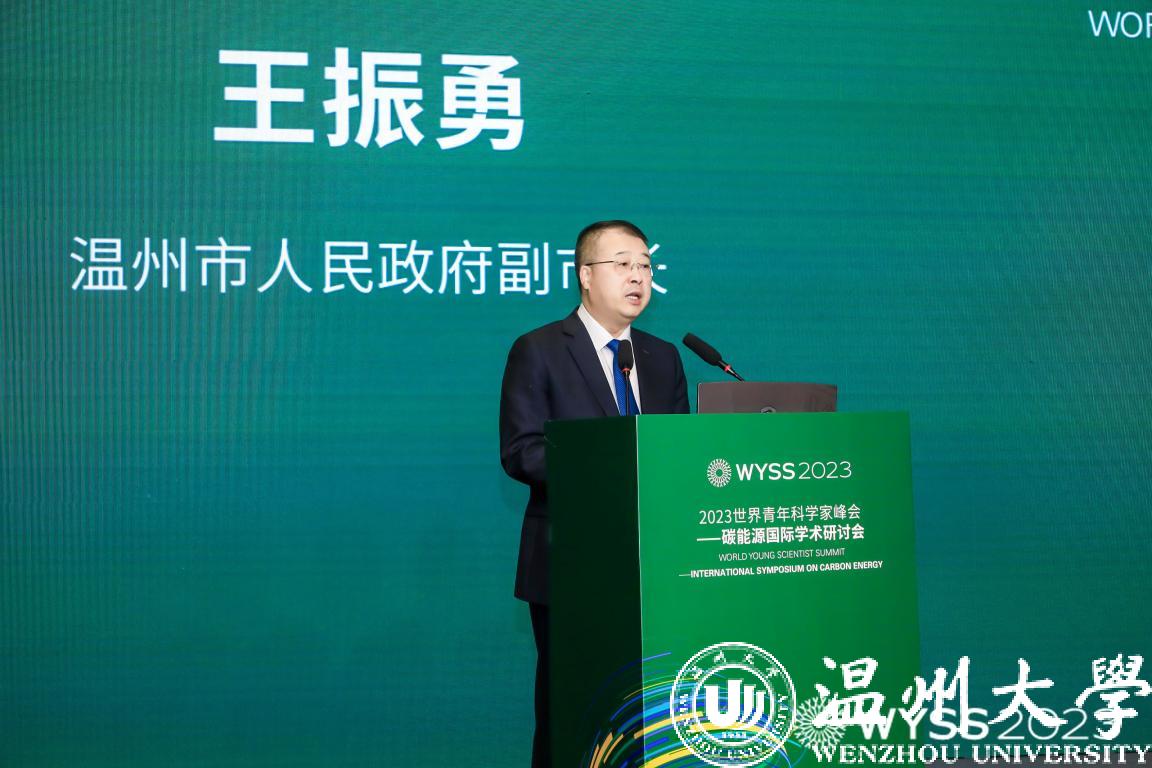 王振勇致辞。他对来宾们表示热烈的欢迎,对于长期以来一直支持温州发展的社会各界人士表示由衷的感谢。王振勇表示,温州将通过三方面努力继续锚定双碳目标,紧抓发展重大战略机遇,一是持续优化产业结构,加快构建清洁低碳、安全高效新能源体系;二是持续加强关键核心技术攻关,实施教育科技人才一体试点;三是持续汇聚天下英才,坚持以产聚才、以才兴业。