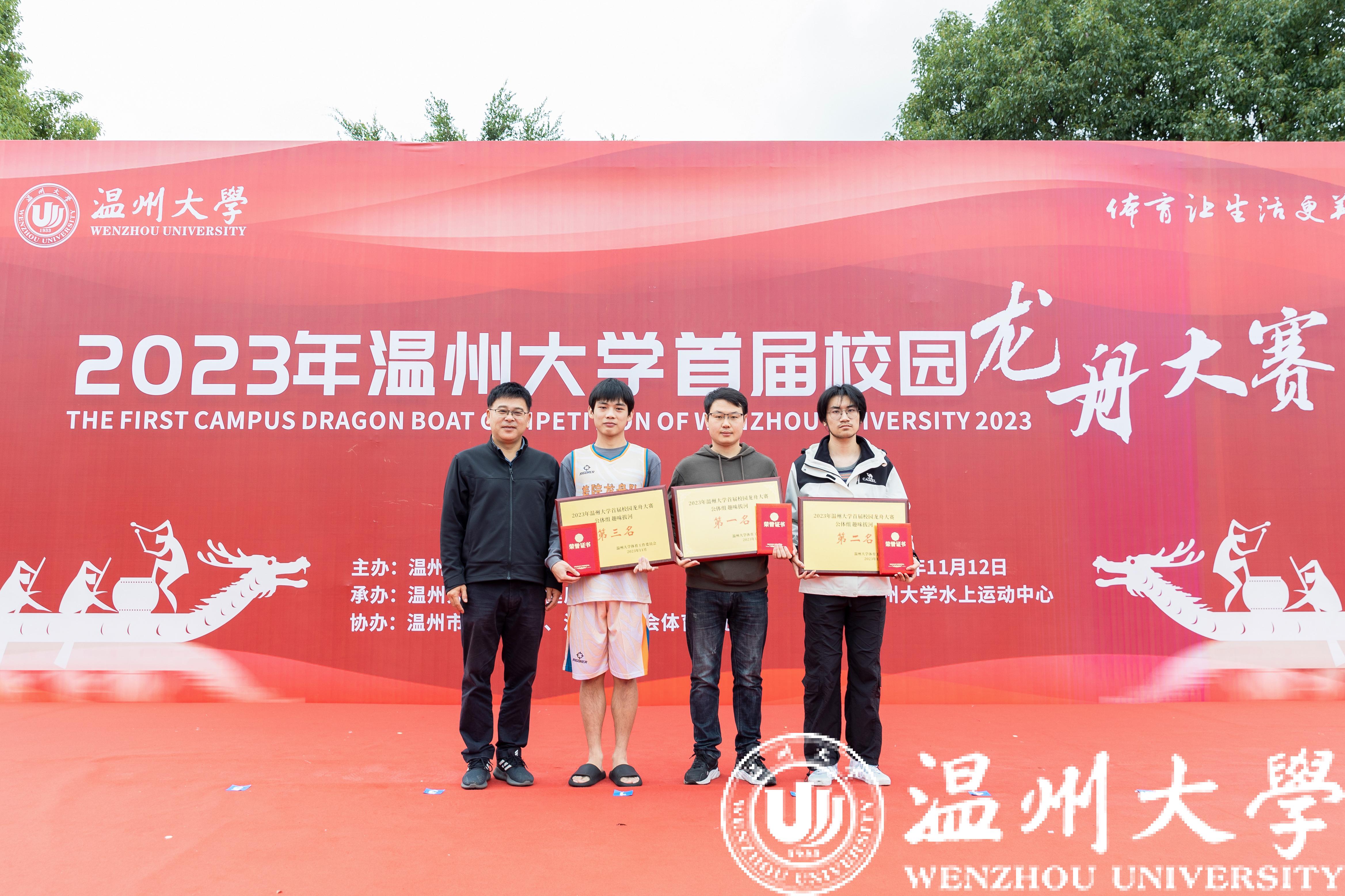 随后举行的龙舟拔河赛将现场的热烈氛围推向高潮,赛场上精彩纷呈,欢呼声不断。最终,电电学院队获得公体组第一名,21体健队获得体育组第一名。