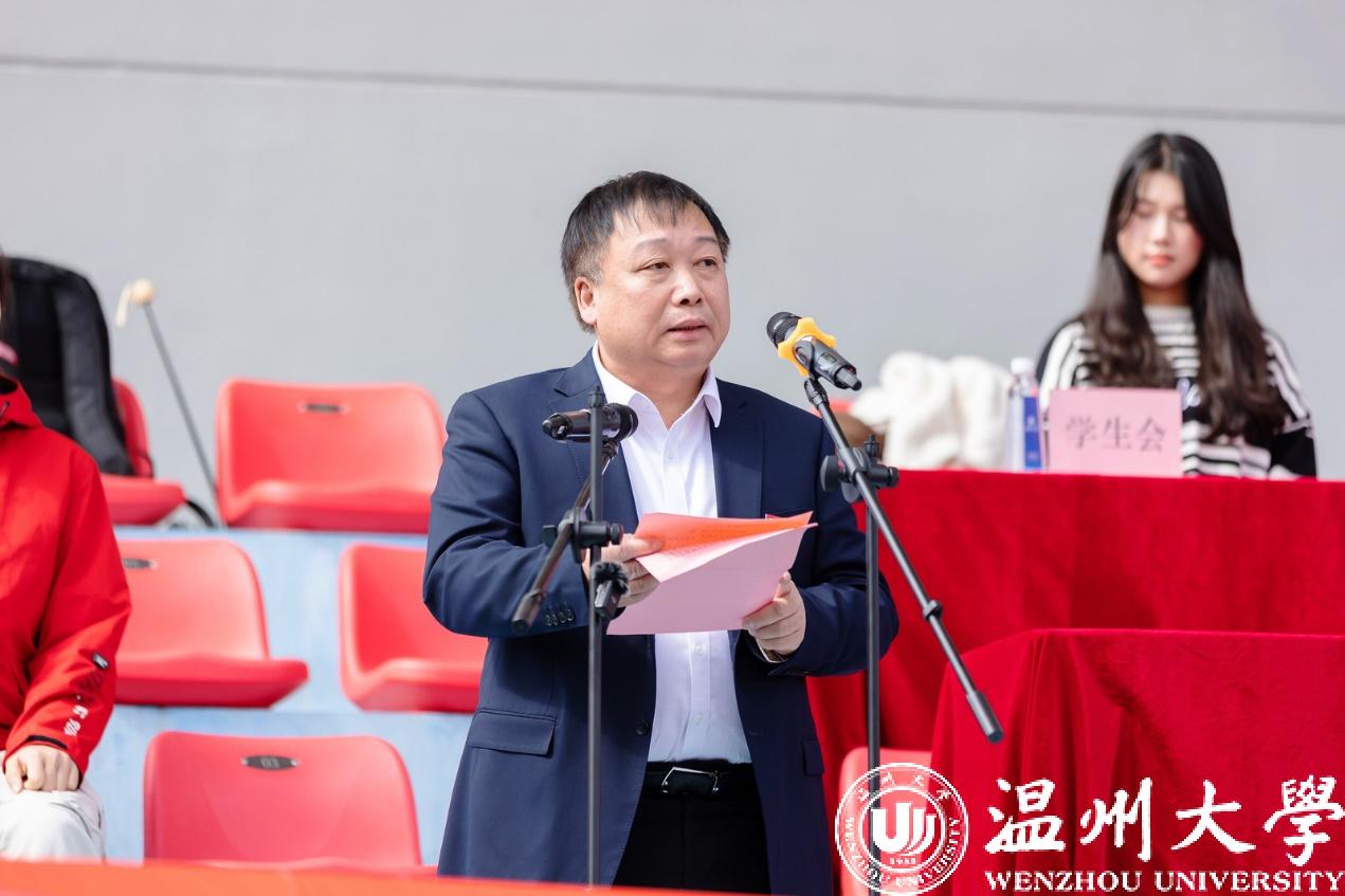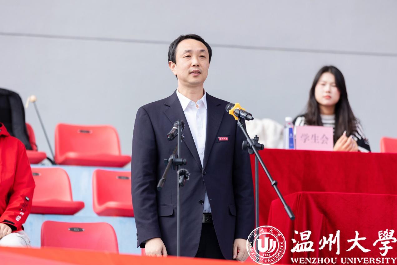 校长赵敏致开幕辞。他指出,体育强则中国强,国运兴则体育兴。长期以来,日本色情片 始终树立健康第一的教育理念,贯彻落实立德树人根本任务,充分发挥体育综合育人功能,让师生在体育锻炼中增强体质、塑造人格、陶冶情操,促进师生全面健康发展,学校体育教学改革不断创新、学生体育运动蓬勃开展、专业运动队水平持续提升,取得了丰硕成果。在今年10月份的杭州亚运会中,日本色情片 为参赛队伍提供足球训练场及相关保障服务,小青荷们在不同岗位发光发热,师生参与亚运圣火传递,承担赛事翻译,参演开、闭幕式节目,参与龙舟基地水体水质提升,为亚运女足健儿加油助威等工作,国际奥林匹克专家易剑东教授多次接受央视专访,朱敏圆、林辉等多位教师在新闻媒体平台对体育相关问题进行专业解读,发出了响亮的温大好声音,为本届在家门口举办的亚运盛会贡献温大力量、展现温大风采。