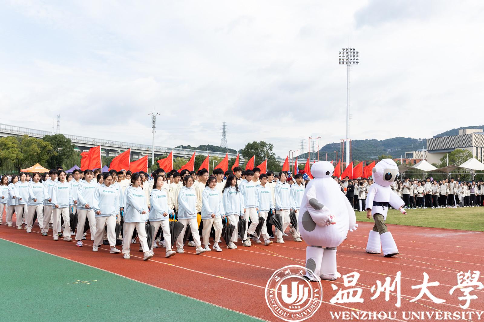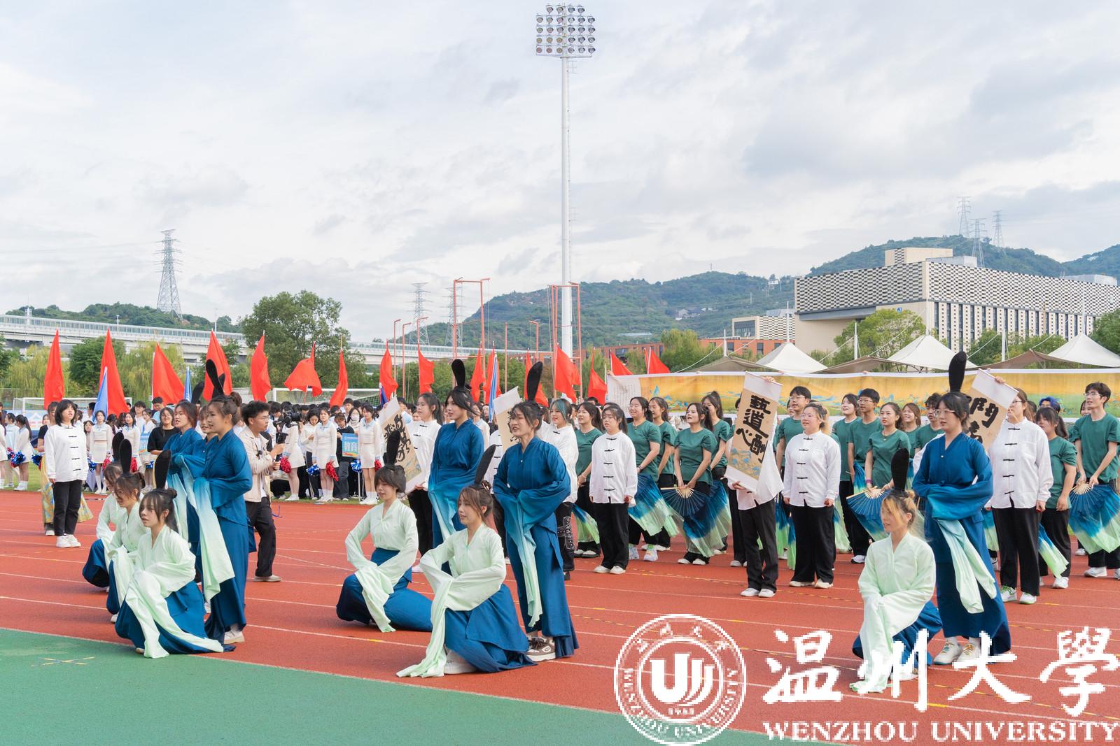青春跃动,异彩纷呈。各学院方阵整齐划一、意气风发,为大家带来独具各学院特色的方阵表演。优美的舞蹈、欢快的旋律、精彩的瞬间,入场式充分展现了温大健儿充满朝气和锐气的昂扬之姿和敢为人先、追求卓越的精神风貌。