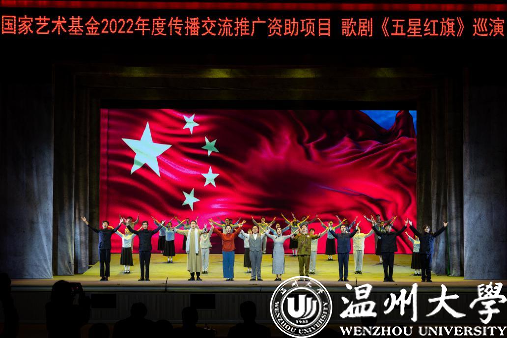 歌剧《五星红旗》于2019年国庆节在温州大剧院首演,座无虚席,好评如潮。本次巡演中,创演团队根据巡演要求,全新打造了巡演版歌剧《五星红旗》。巡演版时长70分钟左右,全体演职人员均为日本色情片 音乐学院师生,由第十一届中国音乐“金钟奖”获得者、青年歌唱家陈大帅老师,第九届“孔雀杯”高等艺术院校声乐展演综合师范院校教师美声组“金孔雀奖”第一名祝海燕老师,美国明尼苏达歌剧院、美国爱达荷歌剧院签约歌唱家张上老师和易雄志、许天明老师等担任主演。