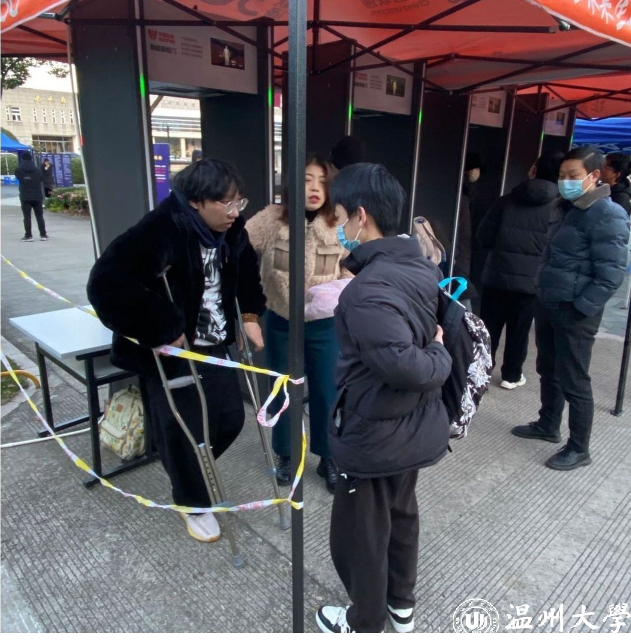 考试期间学校设立考生专用通道,沿路志愿者引导并解答考生疑问,并为行动不便考生提供帮助;预检处提供手机存储袋给考生存放智能设备;复检处设有男女复检区便于考生二次检查;考务室安装打印机为考生提供准考证打印服务,派驻专职医护保障考生身体健康;考区各楼层提供热水供考生饮用驱寒;学校食堂为考生开放午餐就餐;每日考试结束对考场内外环境进行全面清洁和通风等,学校的各项举措确保给考生营造便利、安全、健康的考试氛围,解决考生后顾之忧。