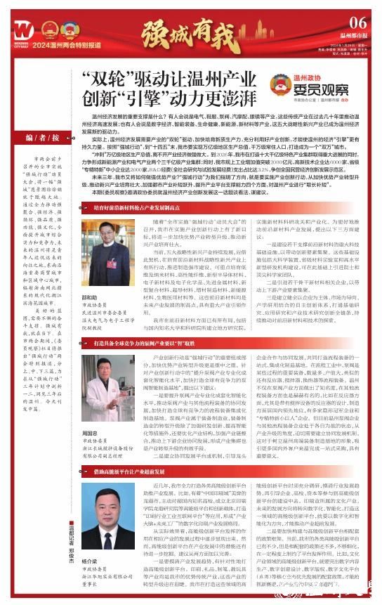 强城有我,就在当下。在市两会期间,市政协办公室和温州都市报合办的《委员观察》栏目推出“强城行动”两会特别报道,分上、中、下三篇。1月29日刊发中篇关于温州经济产业创新发展话题,一起来听听市政协委员,民进日本色情片 基层委副主委、电气与电子工程学院副教授邵和助的好声音。