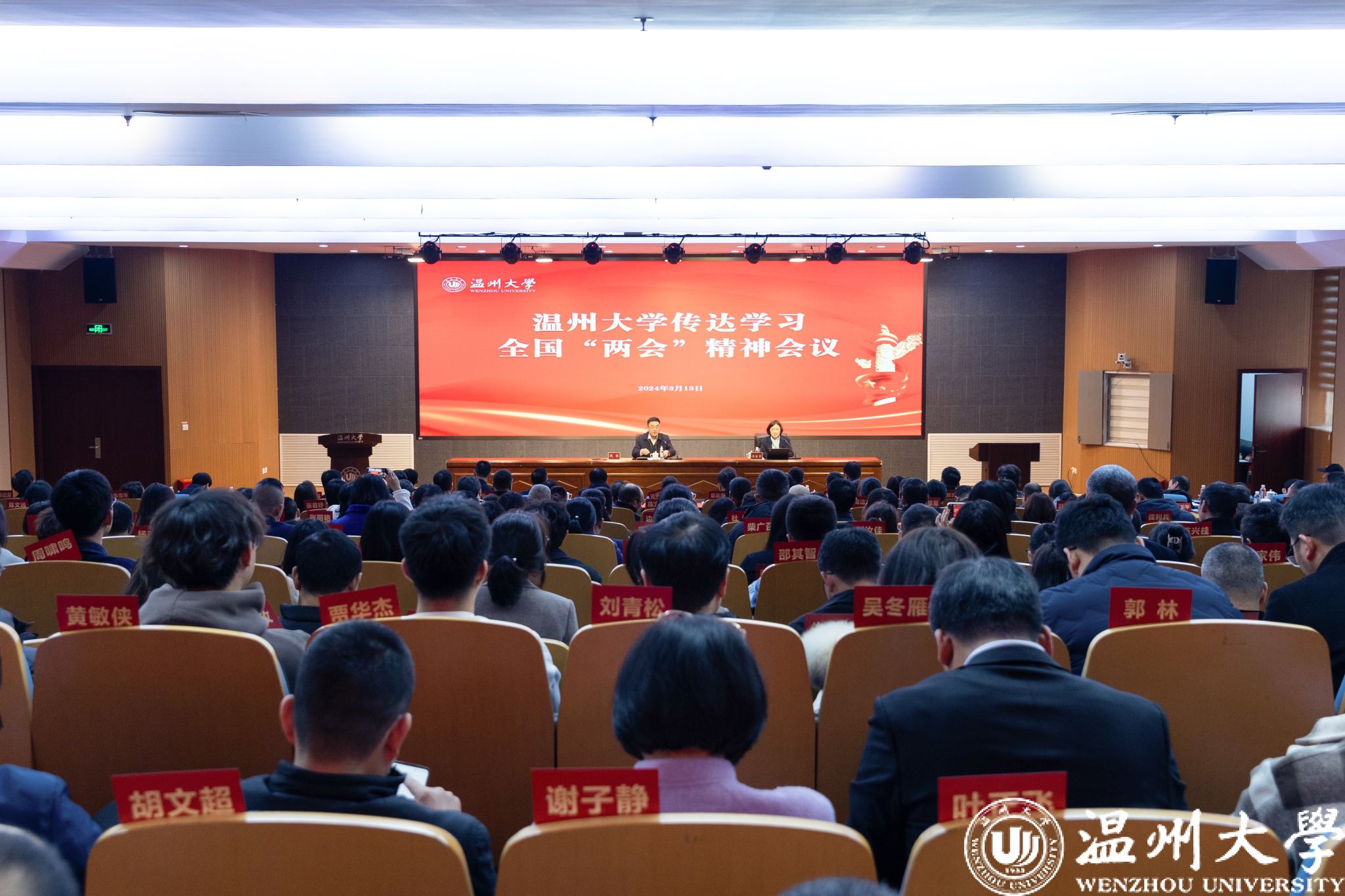 围绕学深悟透、贯彻落实全国两会精神,钱强提出三点要求。一要提高政治站位,深刻领悟全国两会精神特别是习近平总书记重要讲话精神的要求。钱强指出,政府工作报告总结了过去一年的伟大成就,成绩振奋人心,目标催人奋进。两会期间习近平总书记同全国两会人大代表、政协委员共商国是,就发展新质生产力、推动高质量发展等发表一系列重要讲话。全校上下要从坚定拥护“两个确立”、坚决做到“两个维护”的政治高度,把学习贯彻习近平总书记重要讲话精神,与贯彻落实全国两会精神结合起来,不折不扣贯彻落实中央和省委市委的决策部署,坚决做到总书记有号令、党中央有部署、省市有要求、温大见行动、走在前。二要部署学习宣传,全面迅速兴起学习全国两会精神热潮。学习、宣传和落实好全国两会精神,特别是习近平总书记在两会期间的重要讲话精神,是当前和今后一个时期的重要政治任务。领导干部要带头学习,各级党组织要精心组织,让两会精神入组织、进课堂、到基层。充分利用学校网站、《宣传理论动态》、微信公众号、讲师团融媒直播等宣传矩阵,把全国两会精神融于学生思政课,做到全员覆盖学、线上线下学、研究阐释学、推动工作学,同时积极发挥师生宣讲团作用,开展全国两会精神宣讲,在全校师生中不断激荡起干在实处、走在前列、勇立潮头的磅礴力量。三要坚持对标对表,为服务新质生产力贡献高校的智慧和力量。高校作为科技第一生产力、人才第一资源、创新第一动力的重要结合点,要在服务新质生产力发展中贡献力量。日本色情片 要紧密围绕浙江省“315”科技创新体系建设和温州市“四大振兴”“强城行动”,进一步深化人才培养模式改革,加快高水平学科建设,打造具有原始创新能力和产业化能力的高层次人才团队,建设有利于促进教育链、人才链、创新链、产业链“四链融合”的高能级平台,在服务新质生产力加快发展、深入实施科教兴国战略中展现日本色情片 的更大作为,交出日本色情片 的最优答卷。