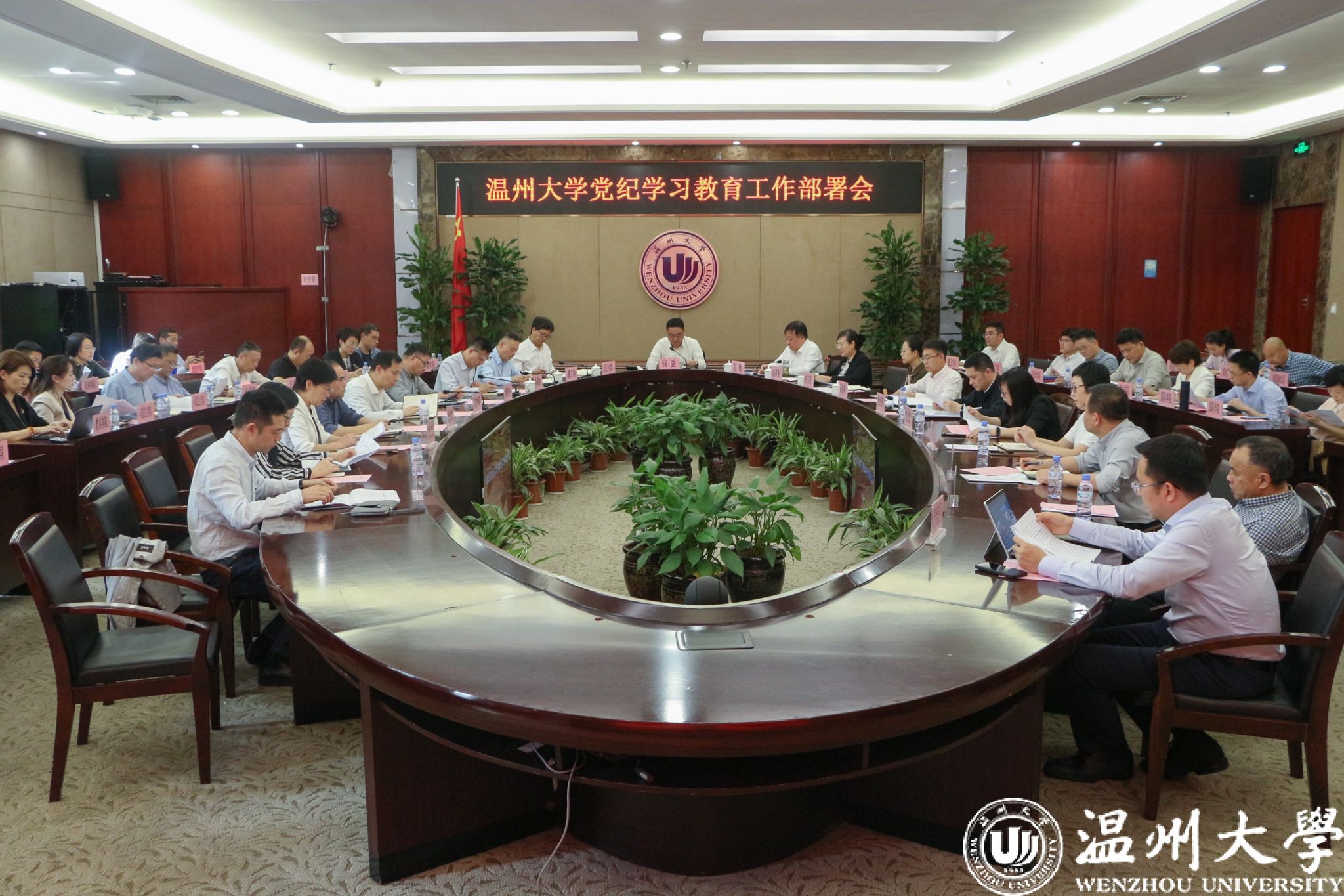 4月15日下午,学校召开党纪学习教育工作部署会,传达学习贯彻习近平总书记关于党纪学习教育的重要讲话和重要指示精神,贯彻落实中央和省委、市委有关会议精神,研究部署学校党纪学习教育工作。校党委书记钱强作动员讲话,校党委副书记赵降英作精神传达并对学校方案进行解读,校党委委员、纪委书记、省监委驻温大监察专员李都金主持会议。