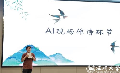 4月17日晚的育英图书馆报告厅俊采星驰,温大学子济济一堂,举办一年一度的诗词大会,迎接即将到来的第29个世界阅读日。大会以“诗随三月春意生,学子研墨祝新词”为主题,并首次开启了“AI作诗”赛道,为活动增加不少新意和看点。