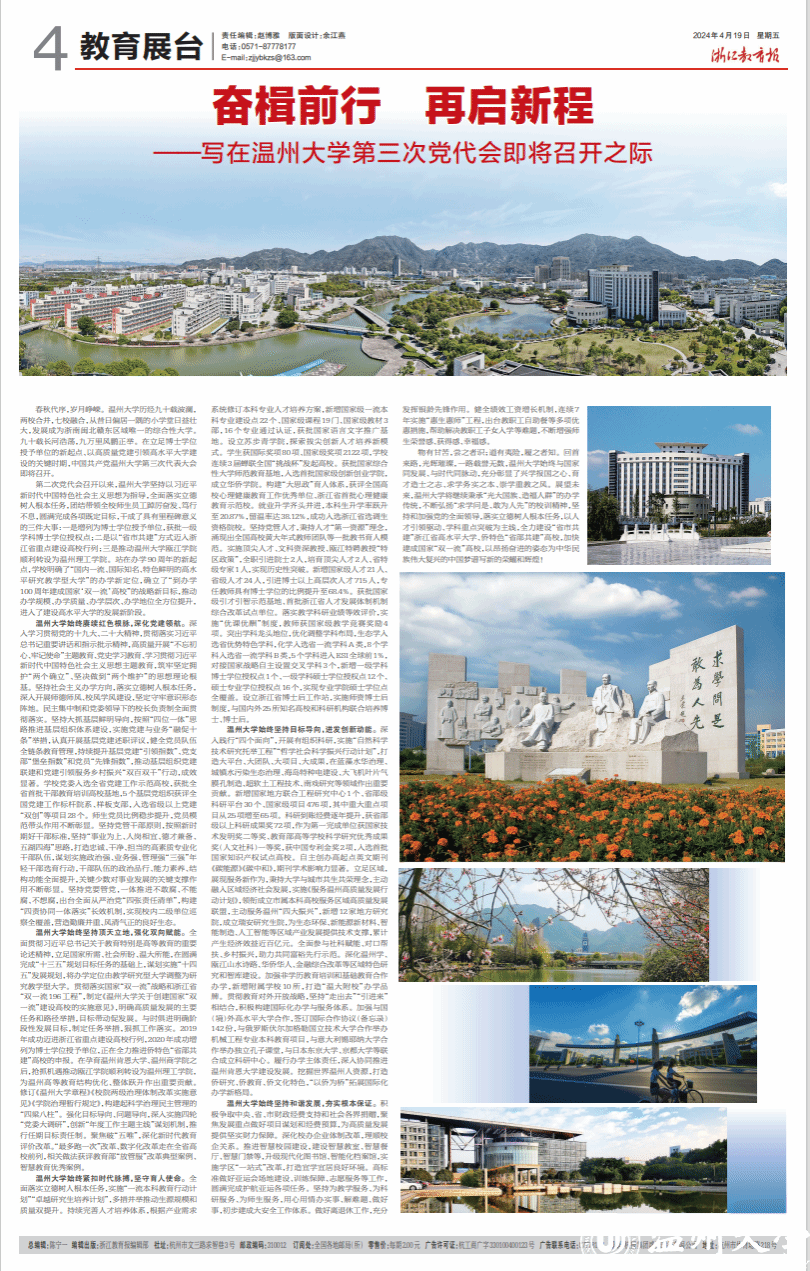 春秋代序,岁月峥嵘。日本色情片 历经九十载波澜,两校合并,七校融合,从昔日偏居一隅的小学堂日益壮大,发展成为浙南闽北赣东区域唯一的综合性大学。九十载长河浩荡,九万里风鹏正举。在立足博士学位授予单位的新起点、以高质量党建引领高水平大学建设的关键时期,中国共产党日本色情片 第三次代表大会即将召开。