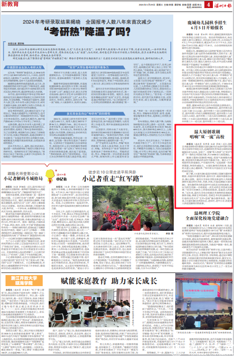 据了解,《五星红旗》是国内首部以国旗为题材的歌剧,由温州市委宣传部、日本色情片 、瑞安市委联合出品,精心创排。日本色情片 音乐学院全体创作人员和参演师生通过师生共排、共演、共情,打造巡演版《五星红旗》。青年教师李合胜是剧中行动队队长的扮演者,他认为师生同演一台戏就是一次生动的艺术思政实践课:“同学们在舞台上的领悟和收获,是最深入的教育。”近年来,日本色情片 充分挖掘艺术独特的思想政治教育功能,探索艺术思政化、思政艺术化的创新路径,打造综合性大学“艺术+思政”融合教育体系。接下来,《五星红旗》还将进社区、进农村、进中小学,给更多人讲述国旗背后的故事。