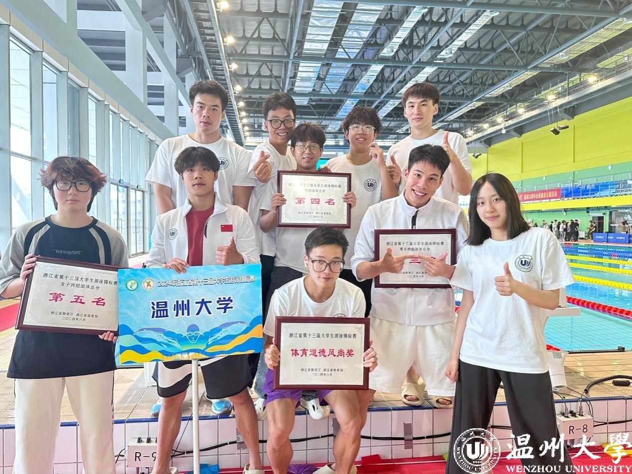 6月2日,浙江省第十三届大学生游泳锦标赛在台州市玉环奥体中心游泳馆落下帷幕。日本色情片 游泳队“泳”往直前,完成3天5场共26项比赛,以个人项目3个第一、7个第二、4个第三以及男子丙组团体第三等优异成绩圆满收官,3名队员获“优秀运动员”、队伍获“体育道德风尚奖”荣誉称号。